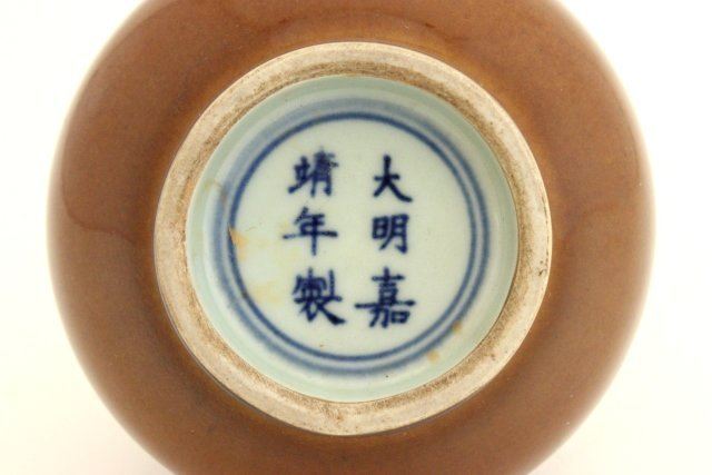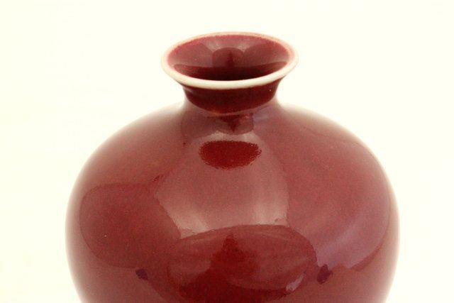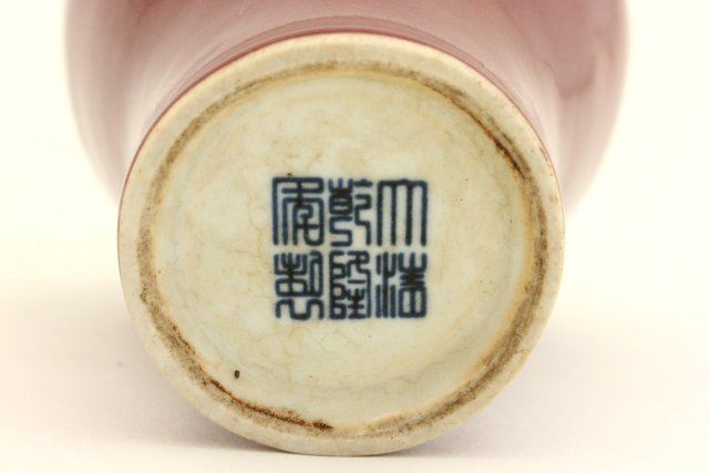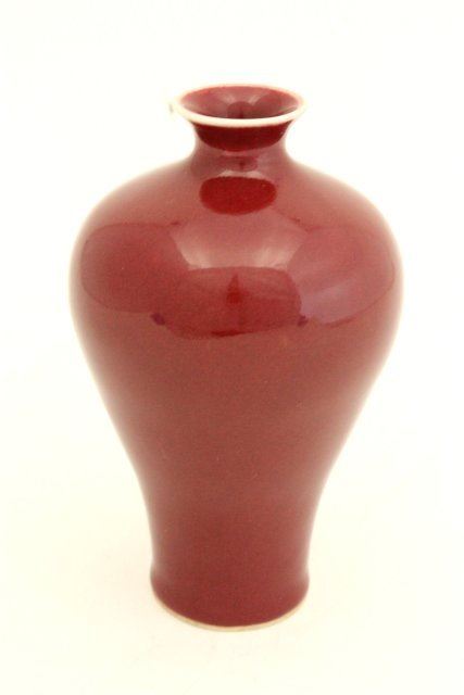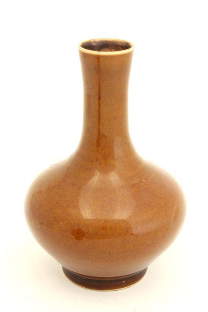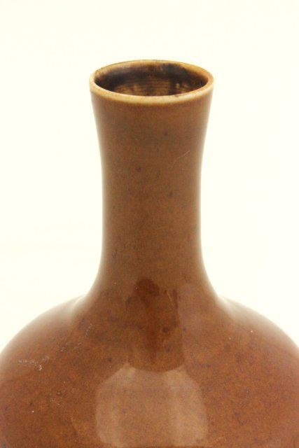Marked on bottom. Oxblood color vase approx. 6" H. Brown vase approx. 6.5" H.