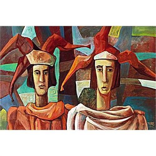 <tr><td>Title:"Two Clowns" - Avant-Garde' style oil </td></tr>