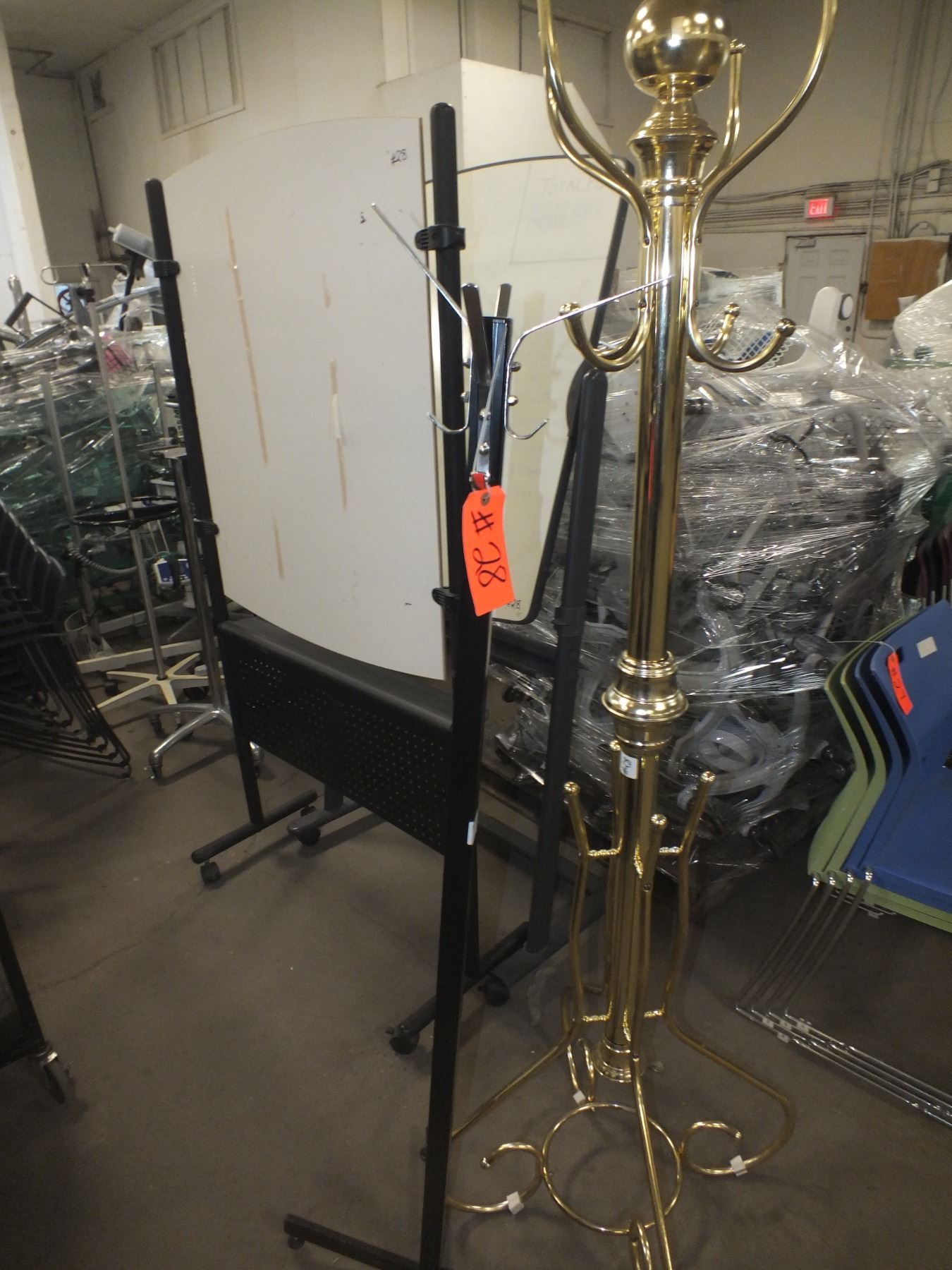 Two Coat Trees & Two White Boards On Wheels...sold as is / where is...used