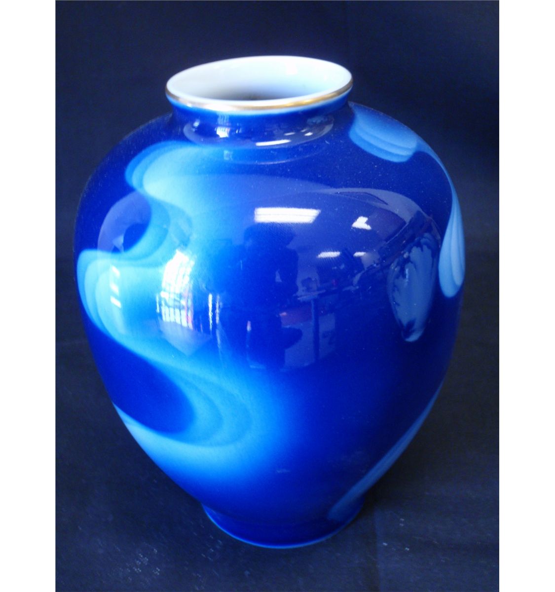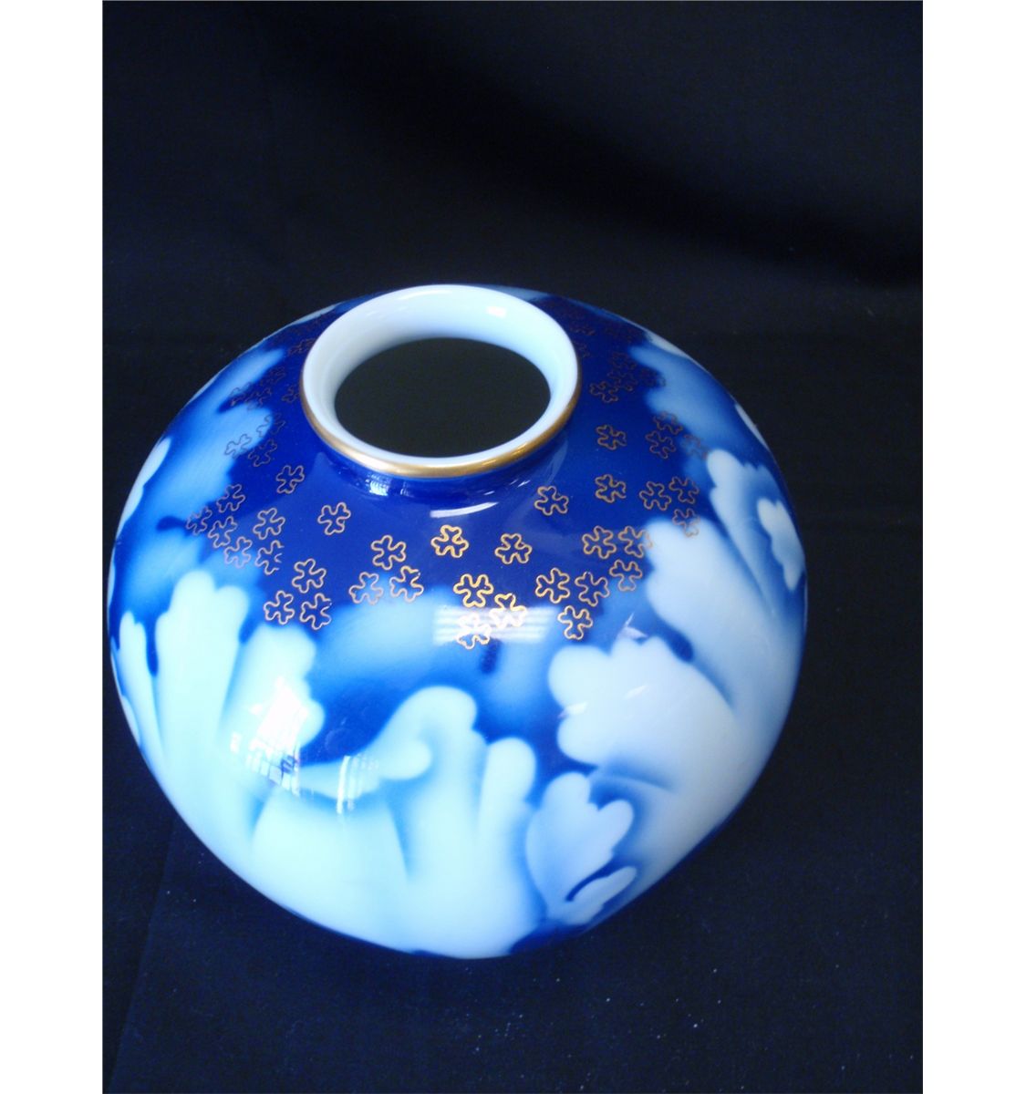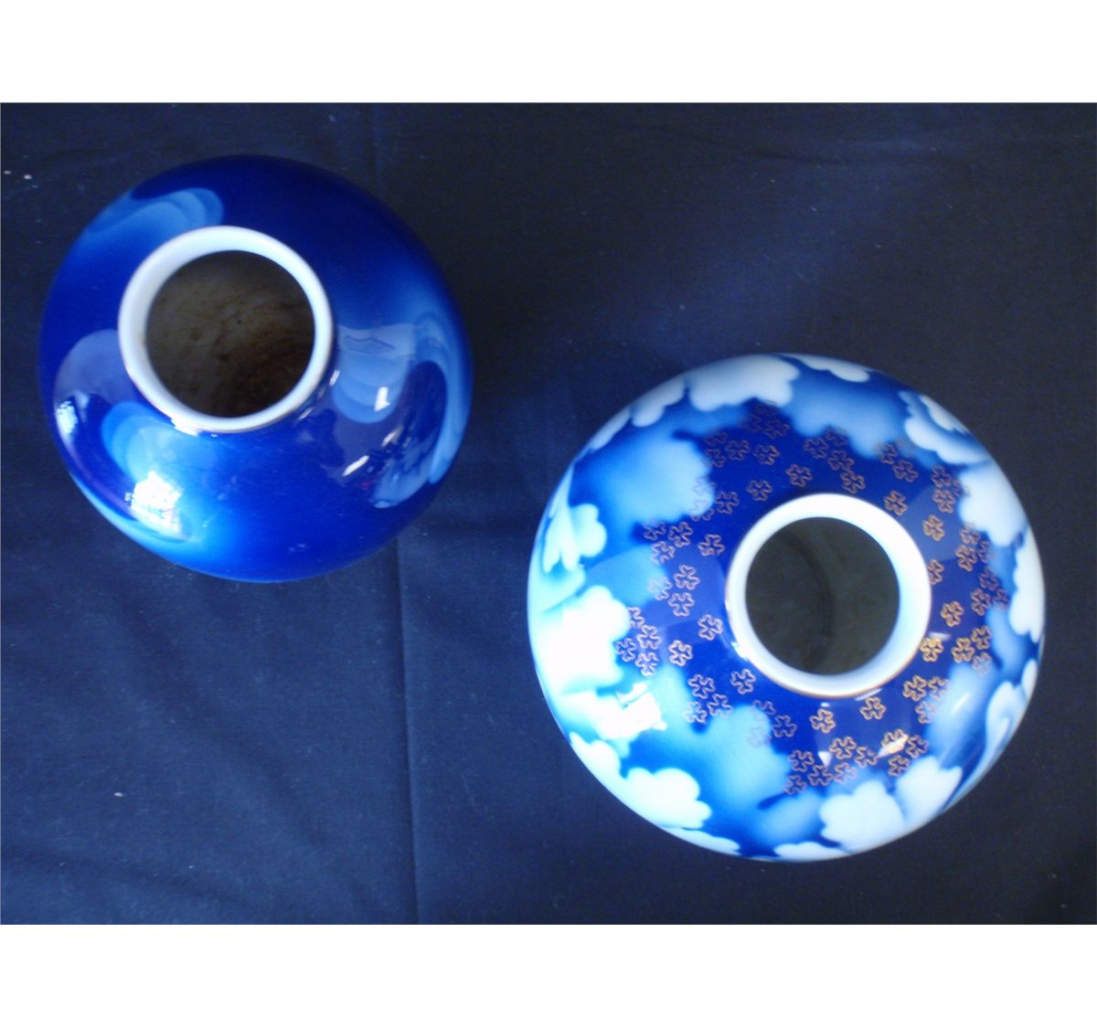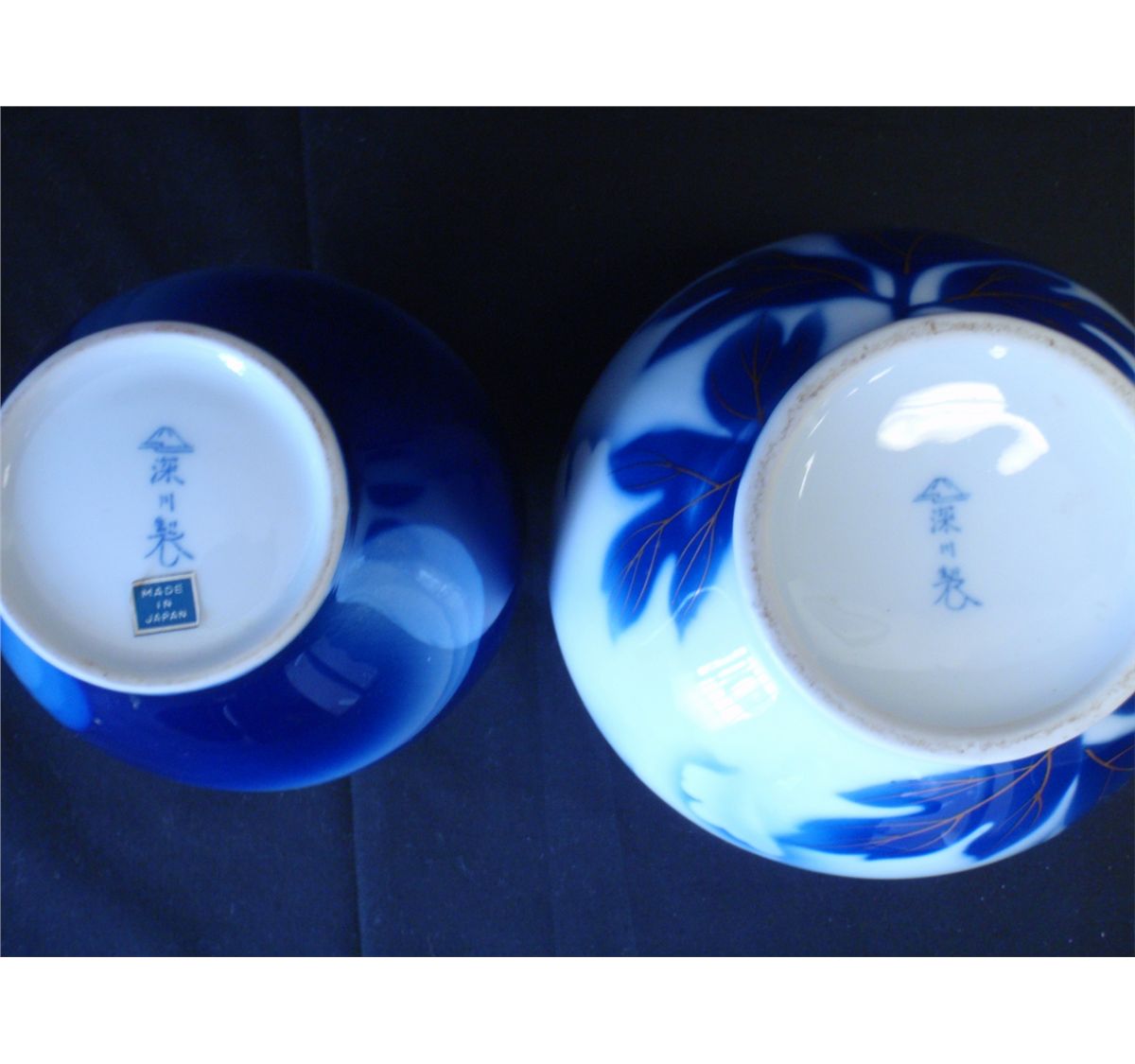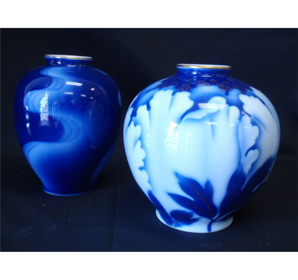 Fukagawa Cobalt blue and gold vase with Chrysanthemum petals. And blue wave pattern vase. The vases are in excellent condition and date from the 1950's - 60's. Each vase measures 6" Shipping on this lot: $15.00. Additional Shipping Charges for Lots sent outside of the U.S
