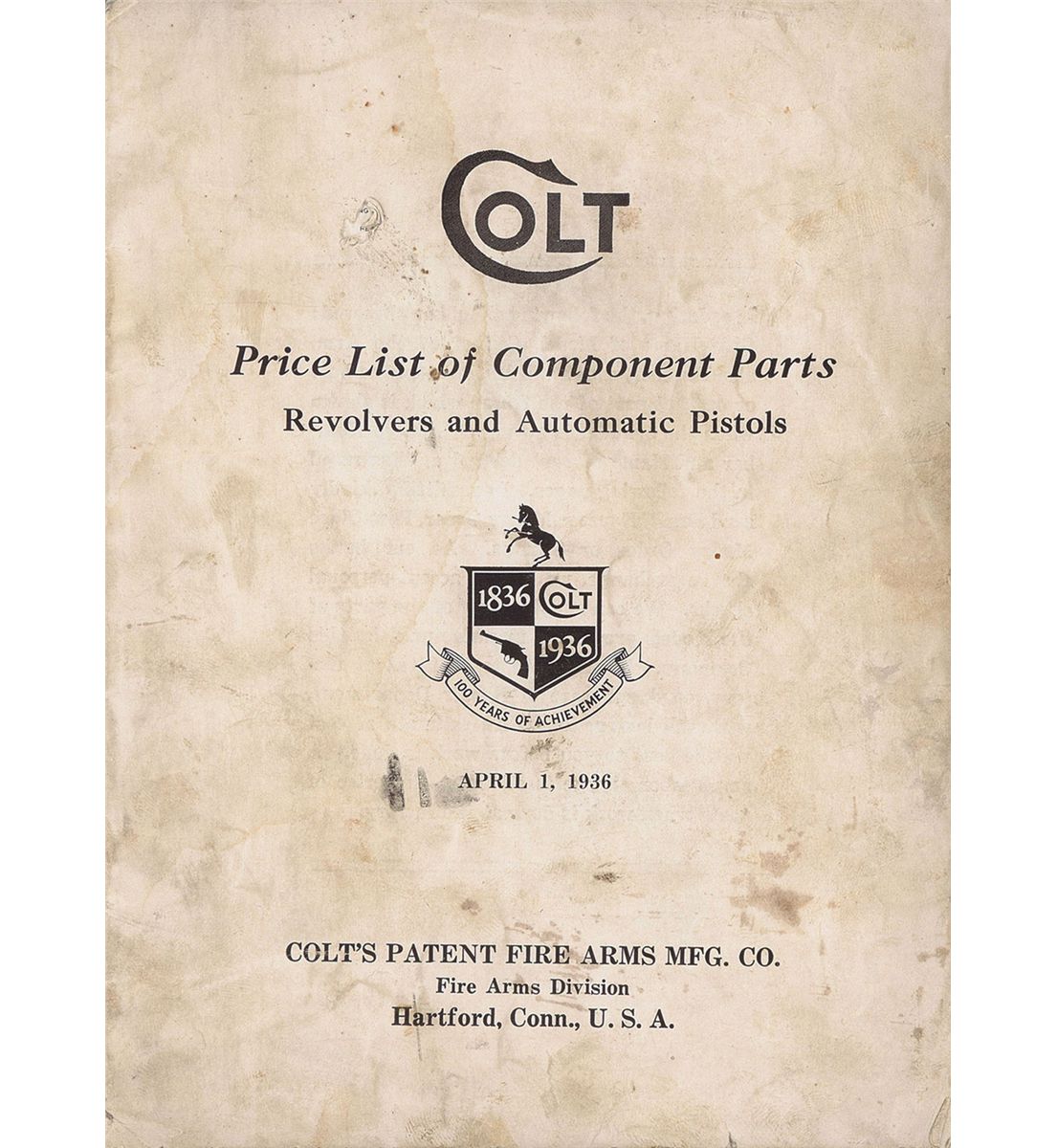 - B) Manufactured in 1980. This pistol has an adjustable rear sight, serrated slide stop, serrated trigger, serrated hammer, serrated thumb safety, serrated magazine release and a serrated arched mainspring housing. With Colt price list for parts dated April 1, 1936.
