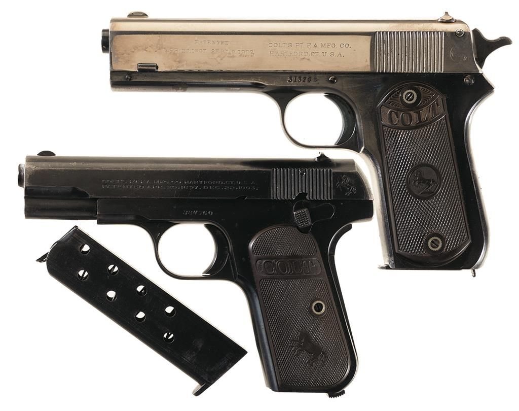 Two Colt Model 1903 Semi-Automatic Pistols -A) Colt Model 1903 Hammer Pocket Pistol with Inscription