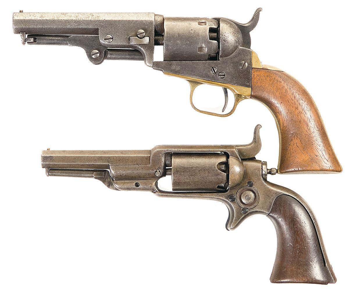 B) Manufactured between 1855 and 1870 with Model 2 markings and features. Grips are ill-fitting with a minor chip on toe.
