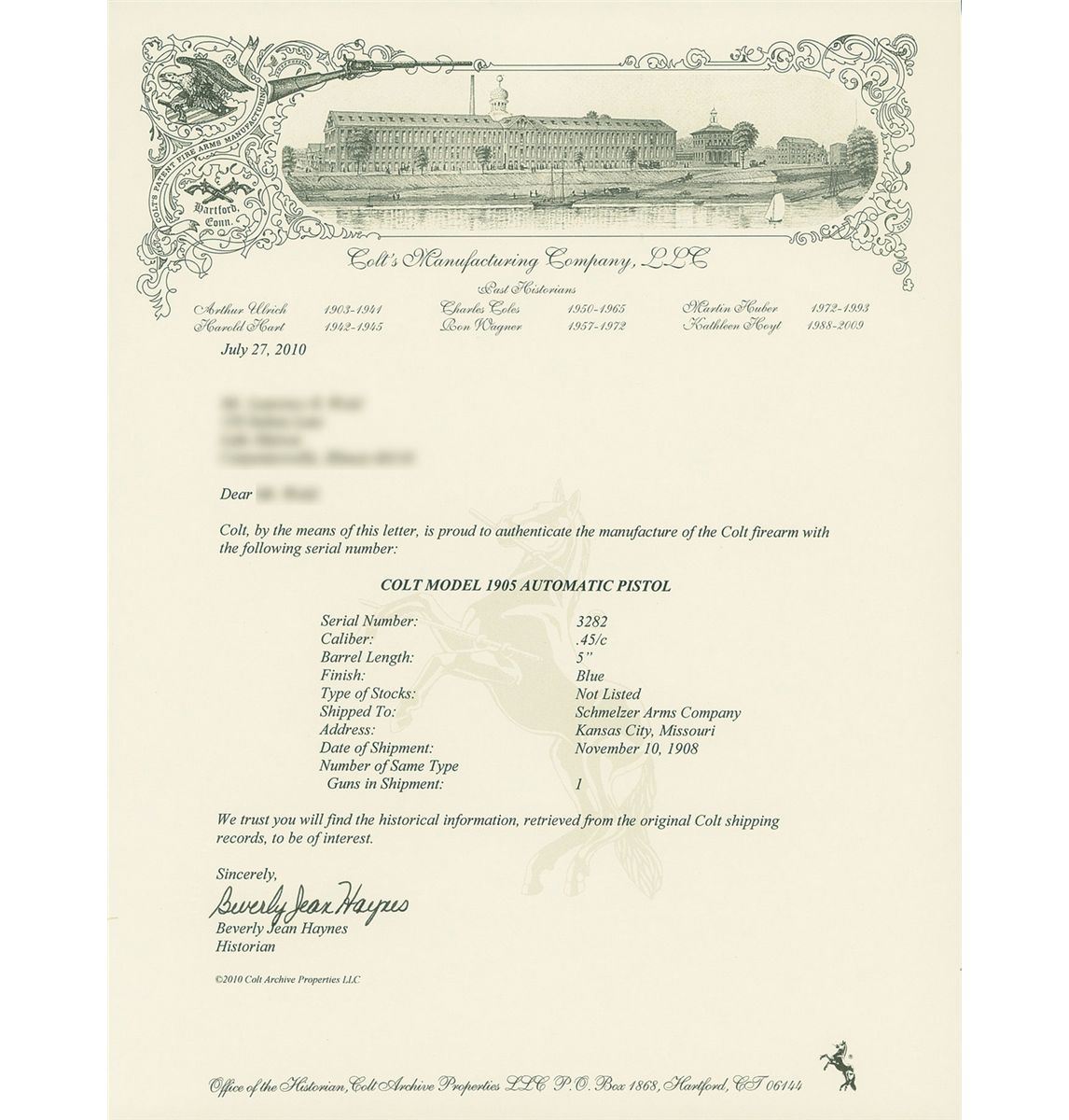 9. GUARANTEE. All property offered for sale is as is, where is. ALL SALES ARE FINAL. THERE WILL BE NO REFUNDS AND NO EXCHANGES. Rock Island Auction does not guarantee or make warranties on any lot sold. Descriptions in the catalog are opinion. They are written as an aid to potential bidders. We acknowledge that there may be errors in what is written. Bottom line is if you bid on it and you are successful you own it. We strongly recommend you to personally view any item you bid on or have an acknowledged expert view the item. Rock Island Auction Company will have no obligation including no refunds or returns will be accepted if the above conditions are not met. Items offered for sale as described in the catalog or any bill of sale, advertisement, addendum sheet, or elsewhere as to authorship, period, culture, source, origin, measurement, quality, rarity, provenance, importance, exhibition, physical condition are qualified statements of opinion and not representations or warranties. No employee of Rock Island Auction Company or any person purporting to act on behalf of Rock Island Auction Company is authorized to make on our behalf or that of the consignor, any representation or warranty, oral or written, with respect to any lot or item for sale.