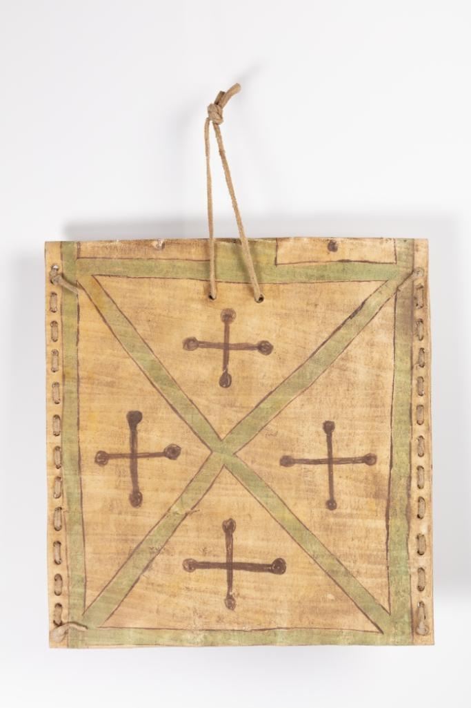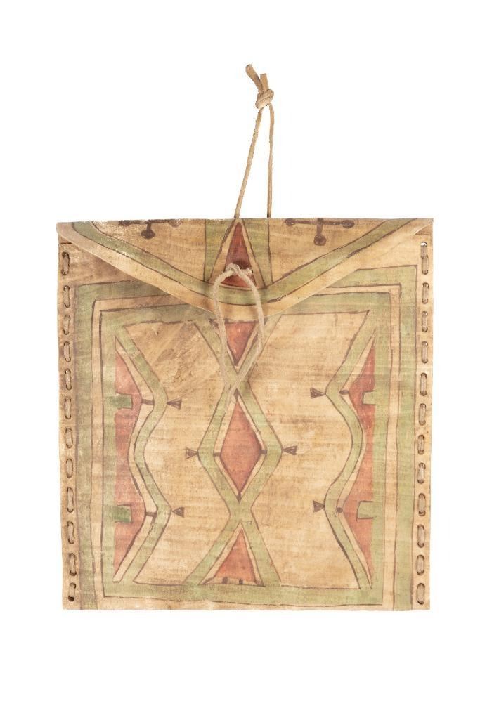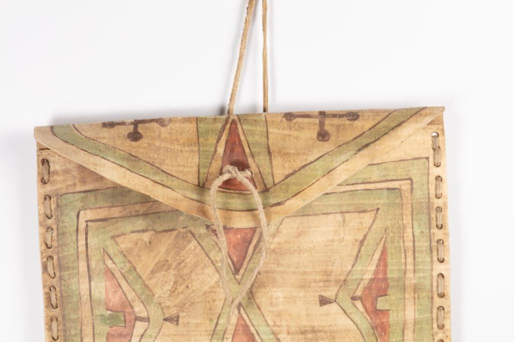 Each 11" x 10", painted with geometric designs in red and green. Contemporary.
