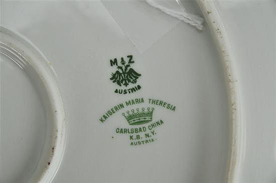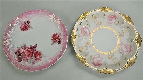 Two Continental Plates: Carlsbad Austria handled, rose motif, 11 1/2in Dia.; German handled, rose motif, 10 1/2in Dia.