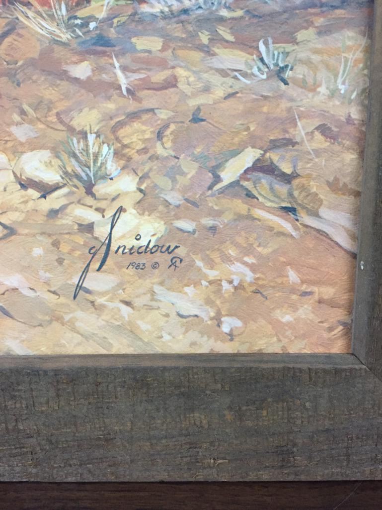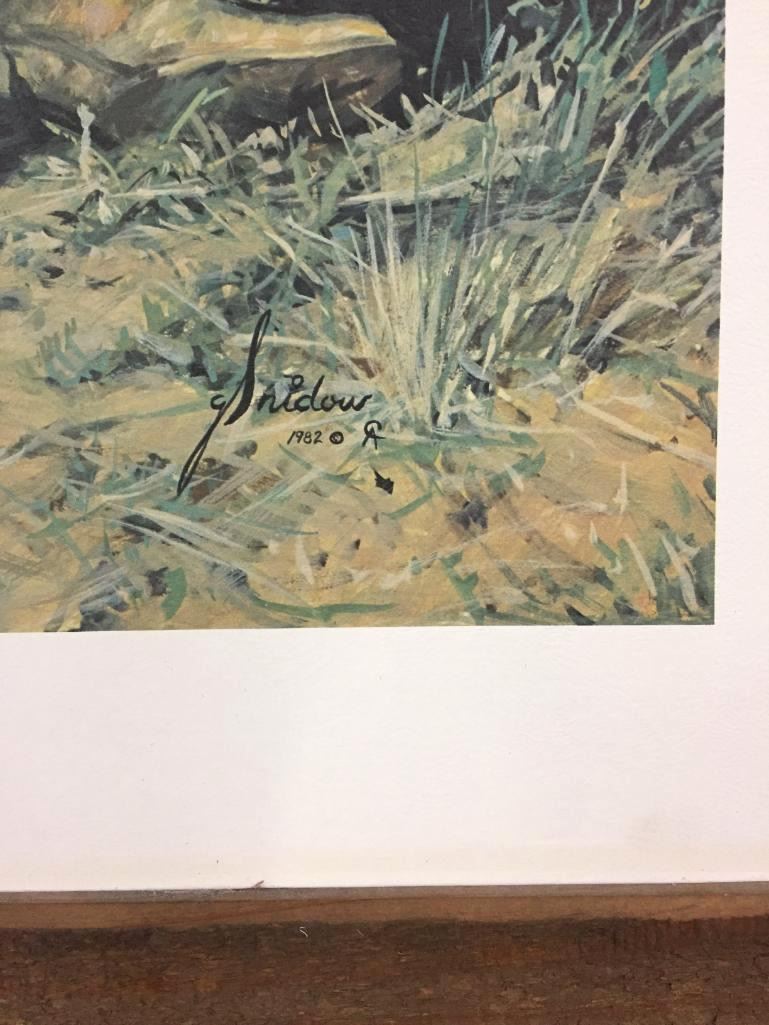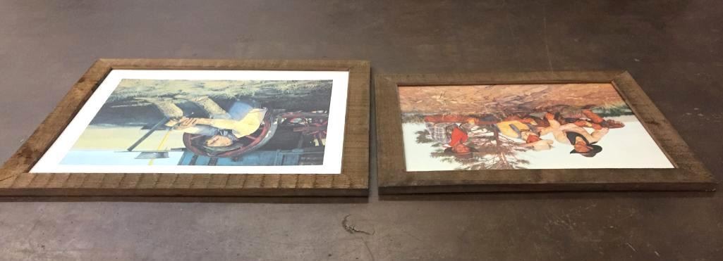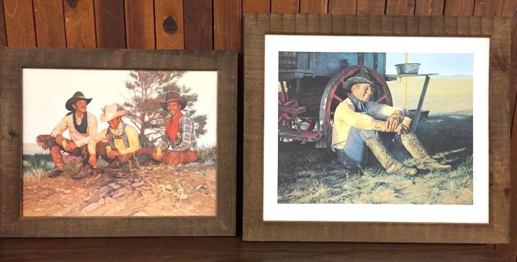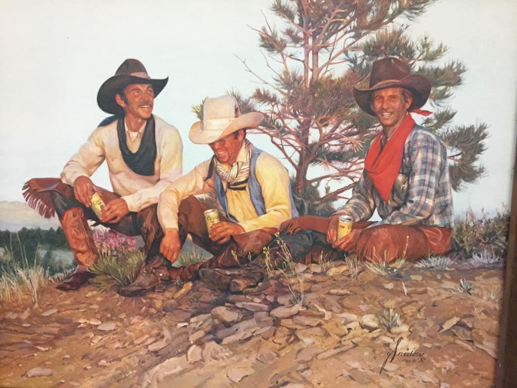 This lot features two signed and framed Coors Beer advertising prints by artist Gordon Snidow. Please note, these are prints, not the posters. Snidow was born in Paris, Missouri in 1936 and now resides in Ruidoso, New Mexico. Snidow graduated with a Bachelors degree in Art from the Art Center College of Design in Los Angeles in 1959. Snidow made a career of painting iconic scenes of the American West. He dabbled in Advertising Art as well and is well-known for these "Coors Cowboys." Maker: Gordon E. Snidow. Approx. Age: 1982 and 1983. Size: 32-1/2" wide x 27-3/4" tall and 28-1/2" wide x 23" high including frames. Condition: Good for its age, normal wear expected. Please look closely at the pictures - they are an important part of our description. Shipping: There will be a $10 handling, packaging fee for shipping this lot. The actual cost of postage will be added on top of that.