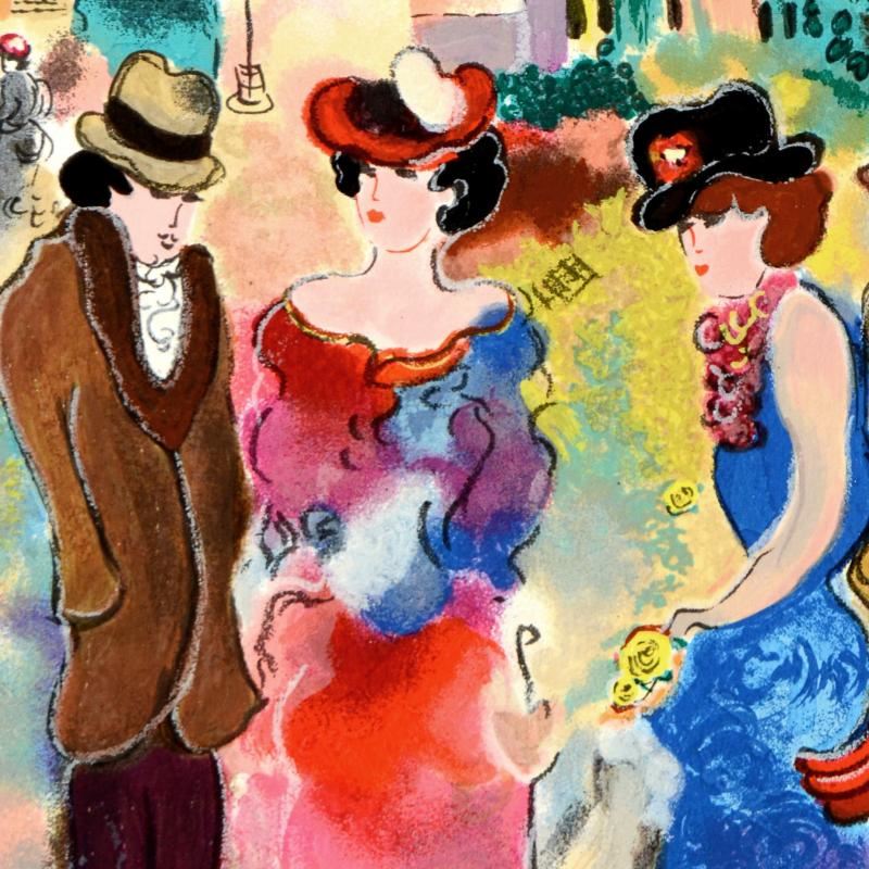 "Two Couples" is a limited edition serigraph on paper by Zule, numbered and hand signed by the artist! Includes certificate of authenticity! Measures Approx. 11.5" x 15.5" (with border), 9.5" x 13.5" (image).