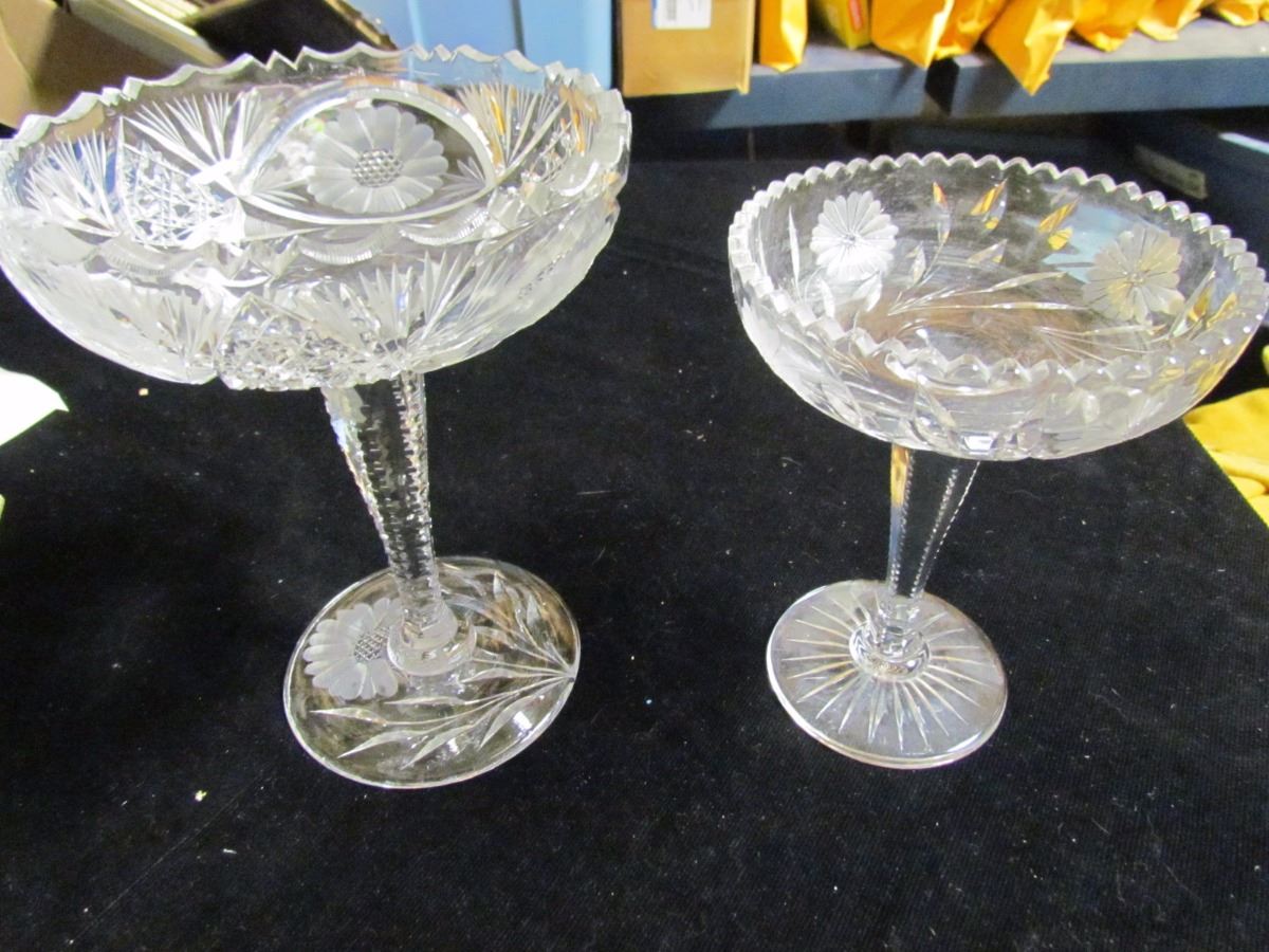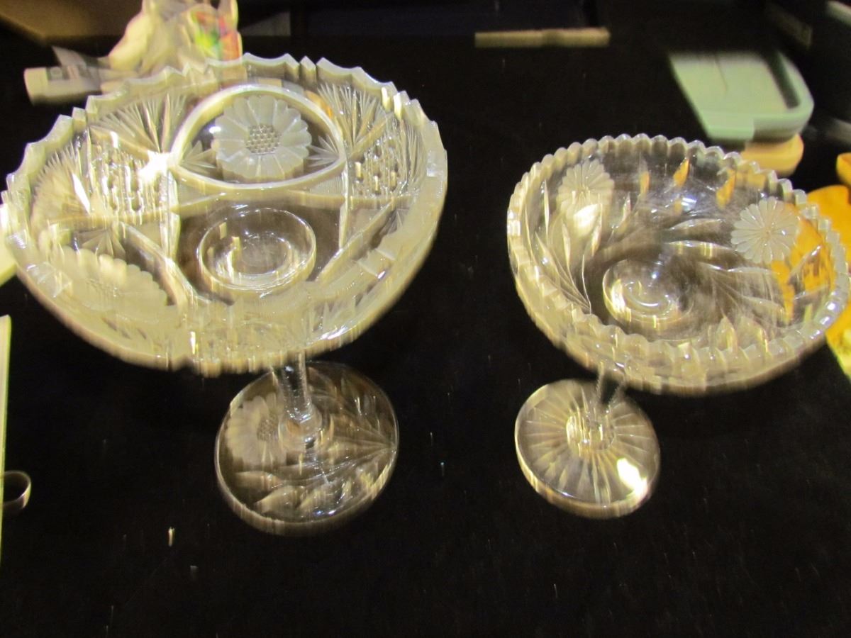 Two Cut Glass Stemmed Bowls