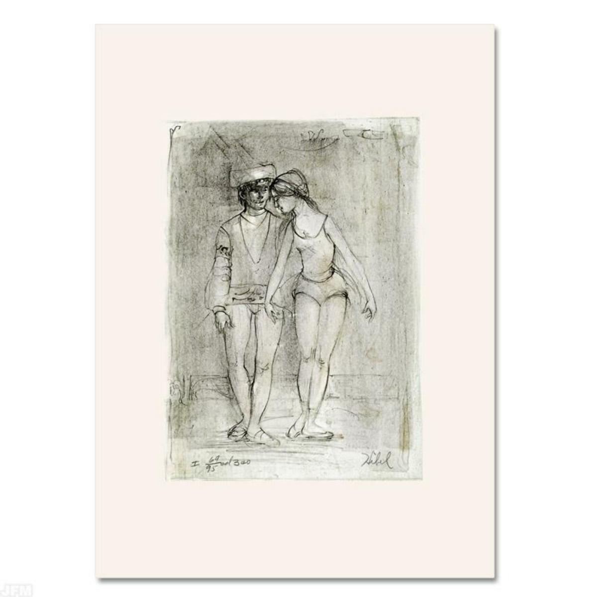Wild lines and muted colors make Edna Hibel's art stand out in any room. "Two Dancers" is a limited edition lithograph on paper, numbered and hand signed by Hibel (1917-2014). Includes Certificate of Authenticity! Measures approx. 11" x 23" (with border), 7" x 9.5" (image). Reference #: 178616.