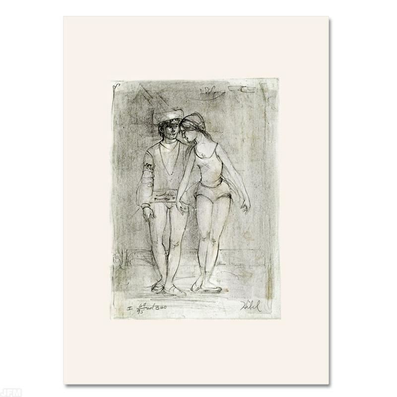 Wild lines and muted colors make Edna Hibel's art stand out in any room. "Two Dancers" is a limited edition lithograph on paper, numbered and hand signed by Hibel (1917-2014). Includes Certificate of Authenticity! Measures approx. 11" x 23" (with border), 7" x 9.5" (image).