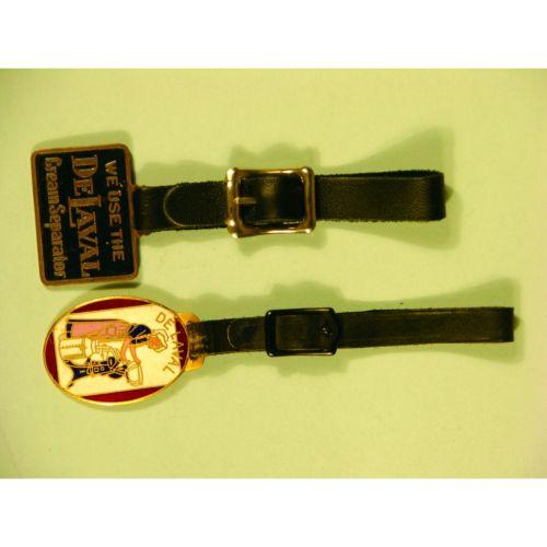 Two De Laval Cream Separator Watch Fobs, one enameled. Excellent condition. Approx. 1 3/4 inch fob only.