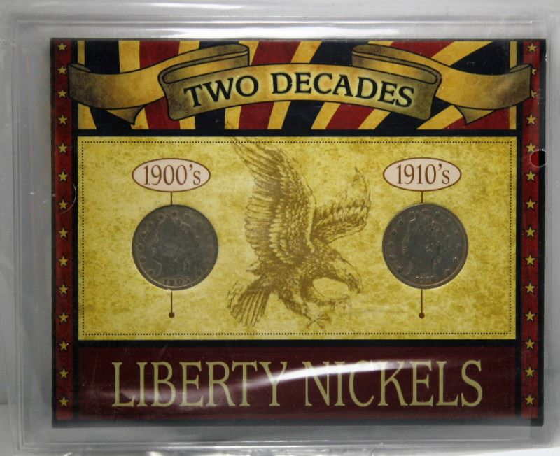 Two Decades of Liberty Nickels - 1900's (1905) & 1910's (1910) - By First Commemorative Mint
