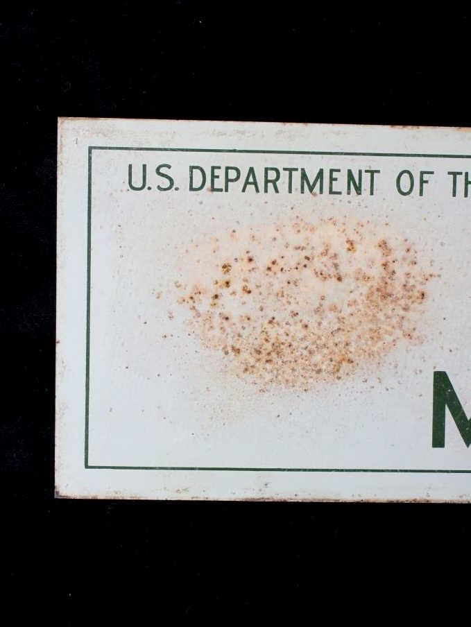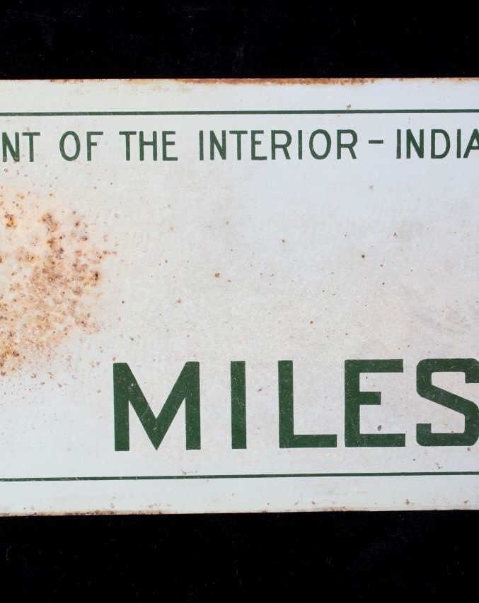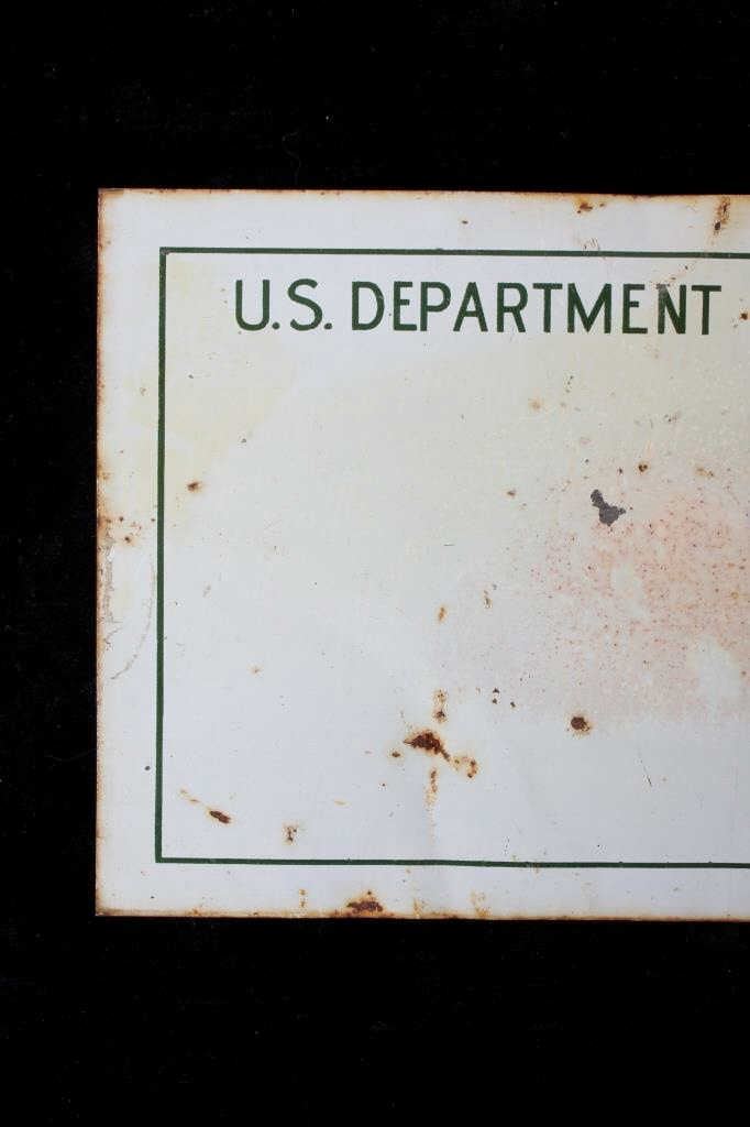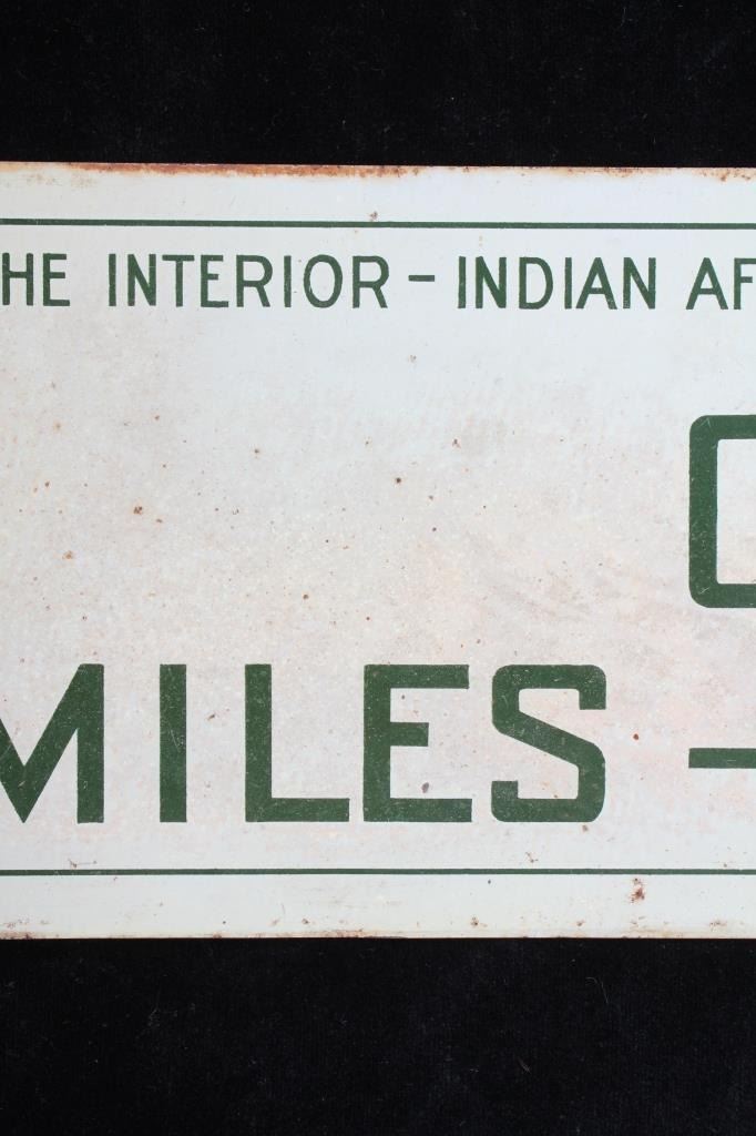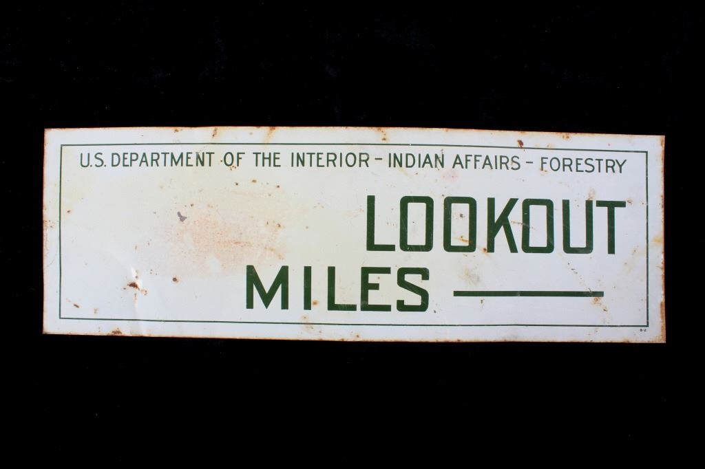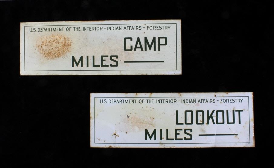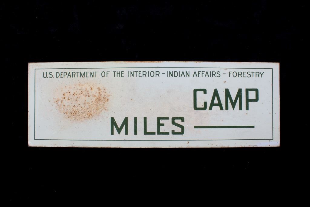Included in this lot for your bidding pleasure are these two Department of Interior Indian Affairs Signs. The signs read "U.S. Department Of The Interior - Indian Affairs - Forestry." These signs both share a light robin egg blue background with forest green lettering. One sign reads "Lookout Miles" and the other "Camp Miles". These signs show some wear from use but overall show good condition. They measure 18" x 6".