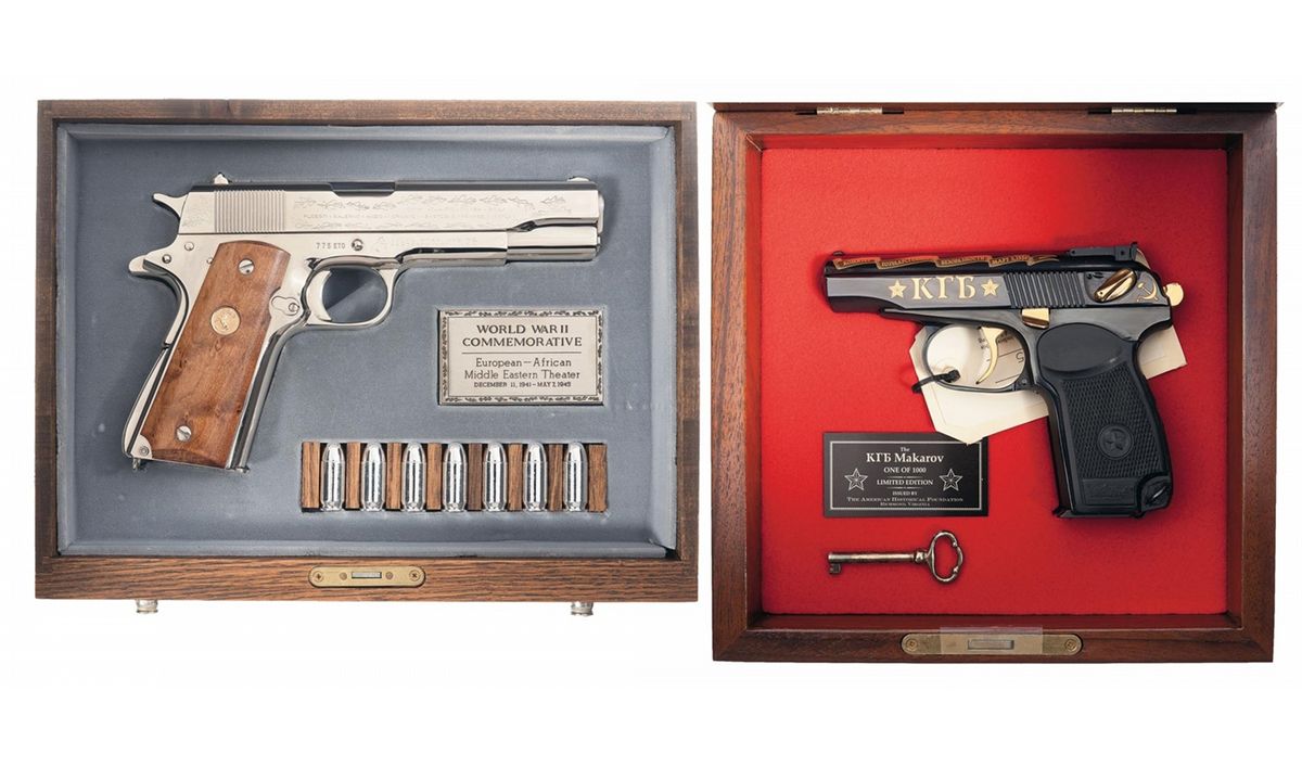 - B) Issued by The American Historical Foundation. 1 of 1000 limited edition. Standard marking and features of the commemorative and of the Makarov. Accompanied by a letter from The American Historical Foundation regarding the KGB. Complete with a plexiglass faced display case.