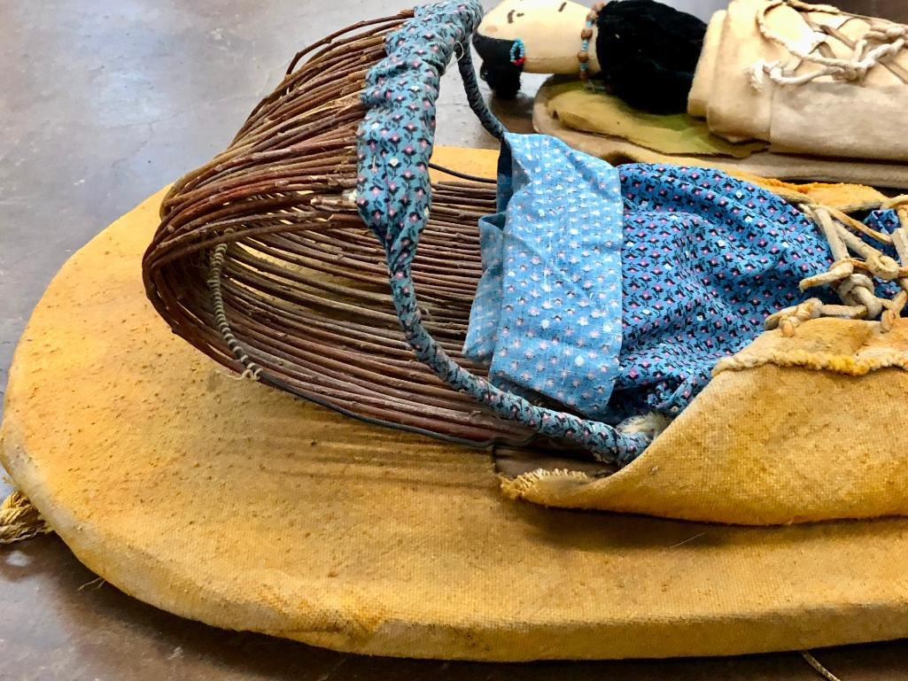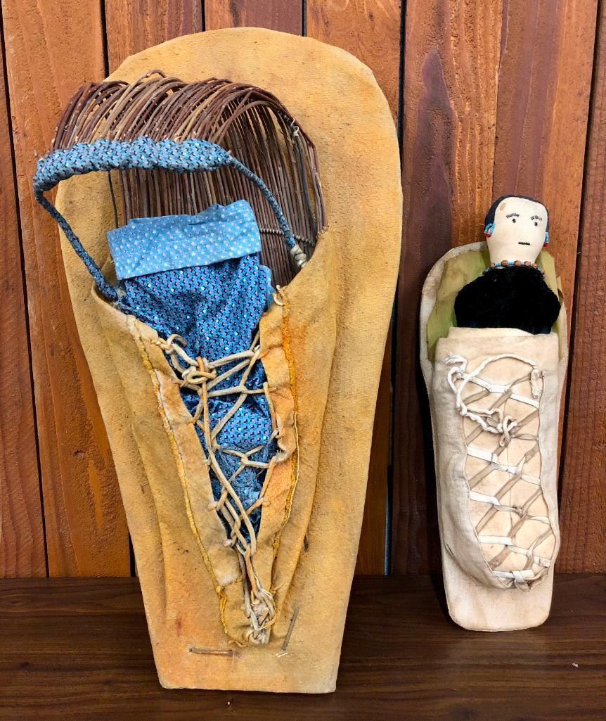 Offered for sale in this lot are two doll sized Plateau cradles. Each has details just like a full size cradle. Maker: Unmarked. Approx. Age: Vintage. Size: 11-1/2 inches wide X 22 inches long. 5-3/4 inches wide X 16 inches long. Condition: Pretty good for its ages, normal wear expected. Please look closely at the pictures - they are an important part of our description. Shipping: There will be a $8 handling / packaging fee for shipping this lot. The actual cost of postage will be added on top of that. BUY IT NOW: If you would like to buy this item now without waiting for the auction to end (this option is only available up to 48 hours before the auction starts to close), the “Buy it Now” price is the high estimate of this lot. If you would like to end the auction early and pay the high estimate (plus applicable fees), please contact us by phone or email and reference this lot number.