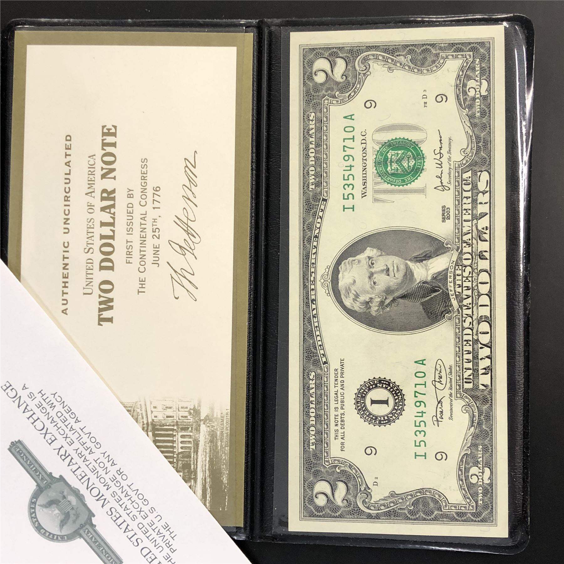 Two Dollar, series 2003 uncirculated Federal Reserve Note