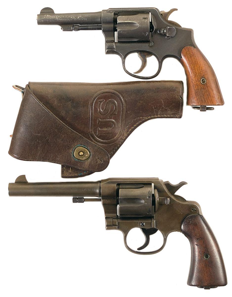 B) Made circa 1917 - 1925. Fixed sights, standard markings, "AA" Augusta rework stamp on frame, checkered hammer, smooth grips and a lanyard ring on the butt.