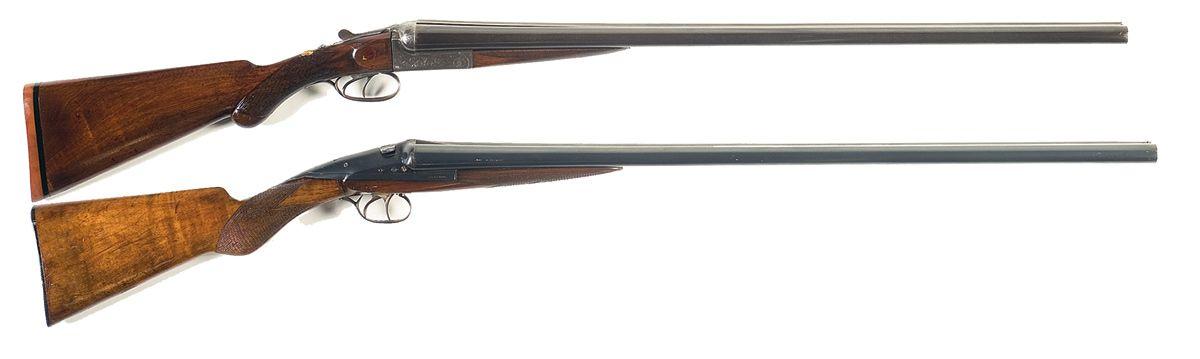 A) Custom replacement barrels by Osborne. Lock plates marked "T.Wild" with floral scroll and border line engraving. Stock is loose and repaired with heavy glue build-up behind safety. 2 3/4" chambers, full/improved cylinder chokes with length of pull 14 1/2".