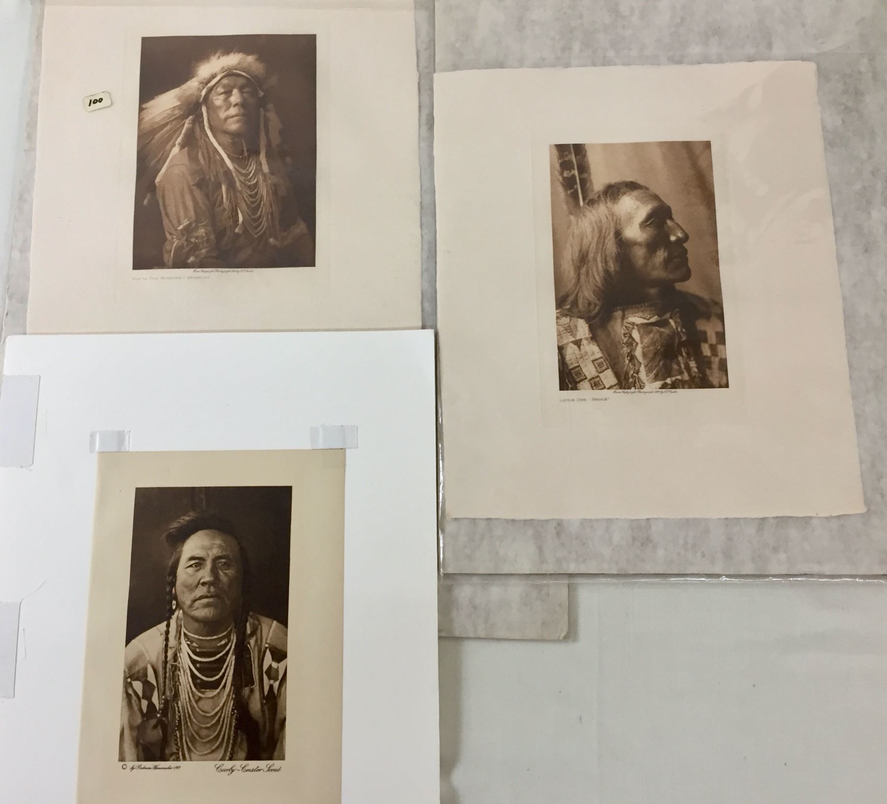 Description: For your collection we offer for sale three prints by Edward Curtis. These prints feature "Curley-Custer Scout", "Fog in the Morning - Apsaroze", and "Little Dog - Beule". Maker: Edward Curtis and Rodman Wanamaker. Approx. Age: Vintage. Size: 12"w x 16" long. Condition: Good for their age, normal wear expected. Please look closely at the pictures - they are an important part of our description. Shipping: There will be a $10 handling / packaging fee for shipping this lot. The actual cost of postage will be added on top of that.