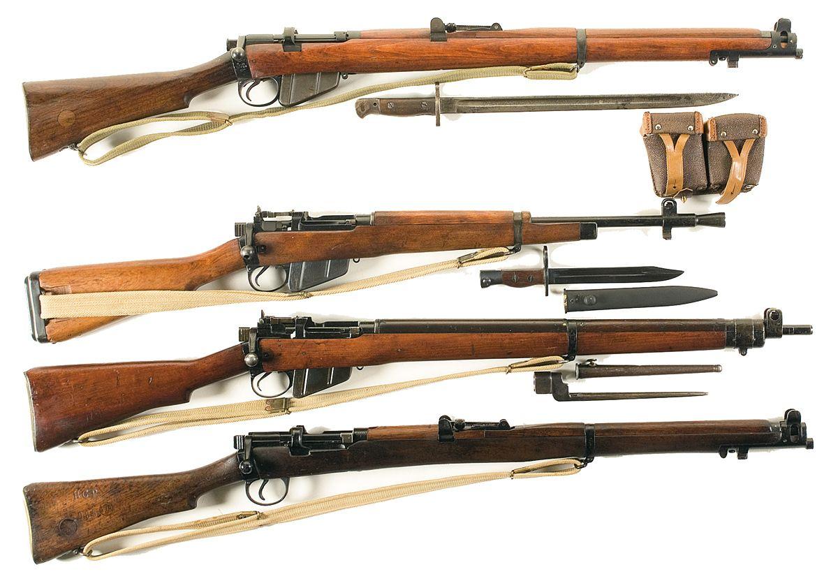 C) Blade and peep sights, with 1943 dated receiver marked "FTR-51", smooth stock, flat buttplate, tan canvas sling, and Number 4 Mark I socket bayonet, 8" cruciform spike blade and metal sheath.