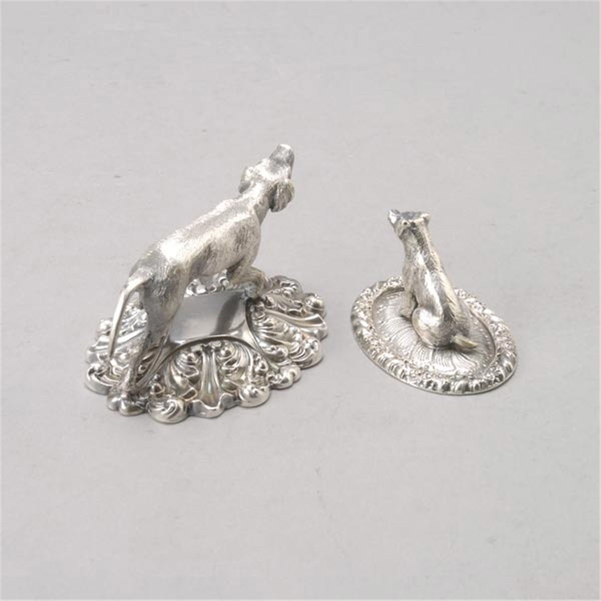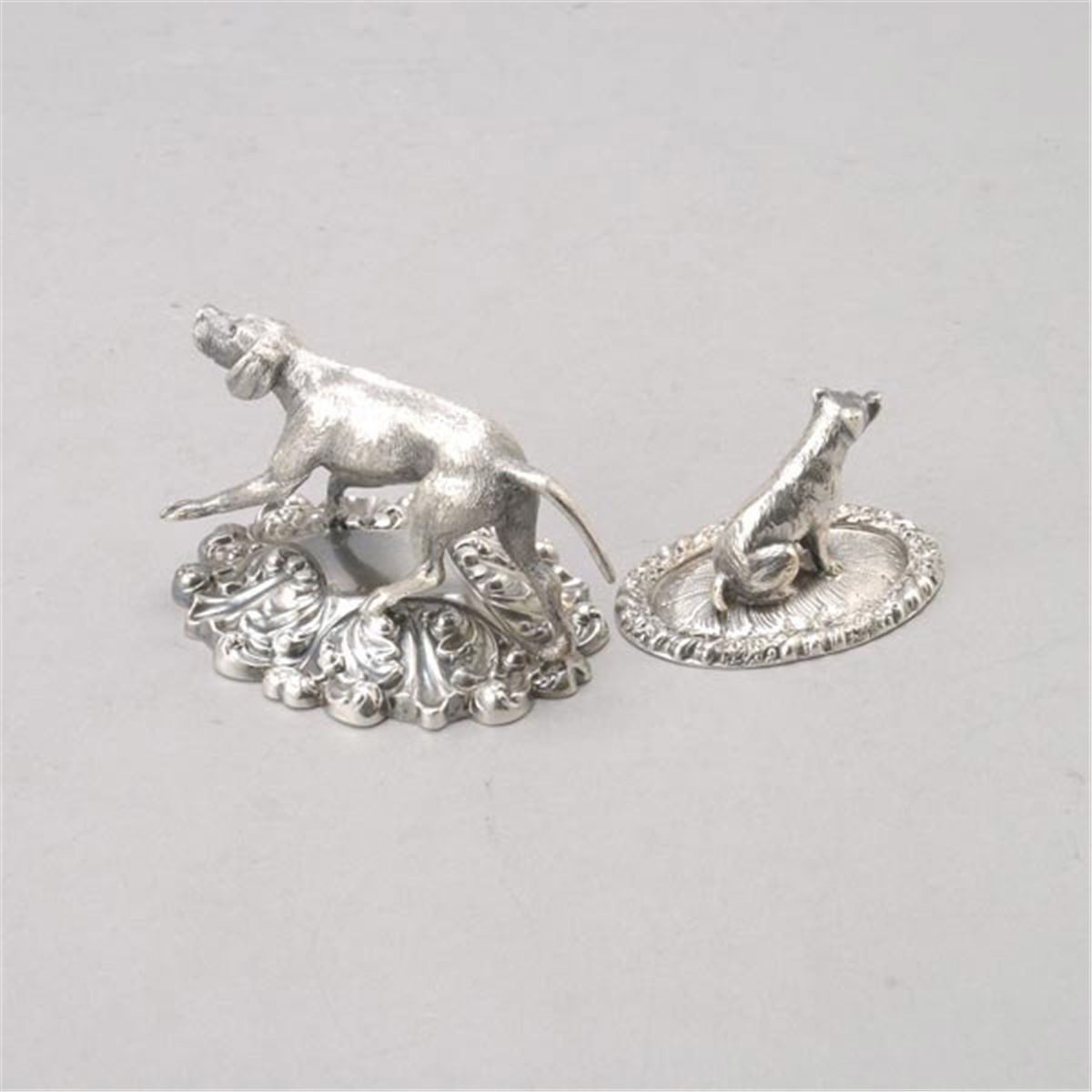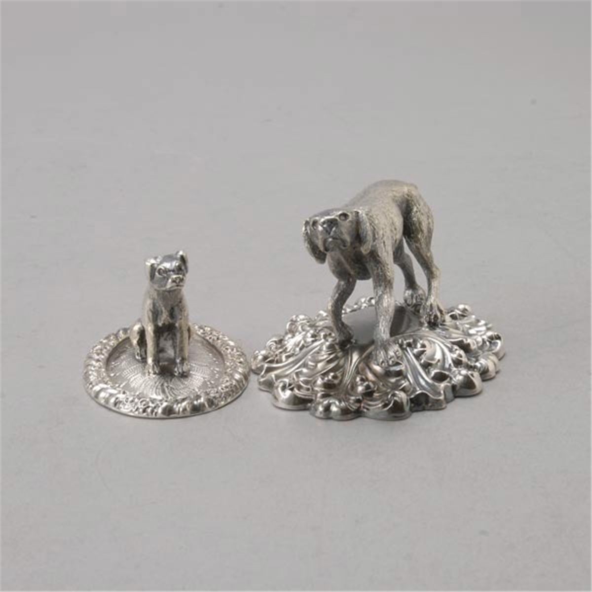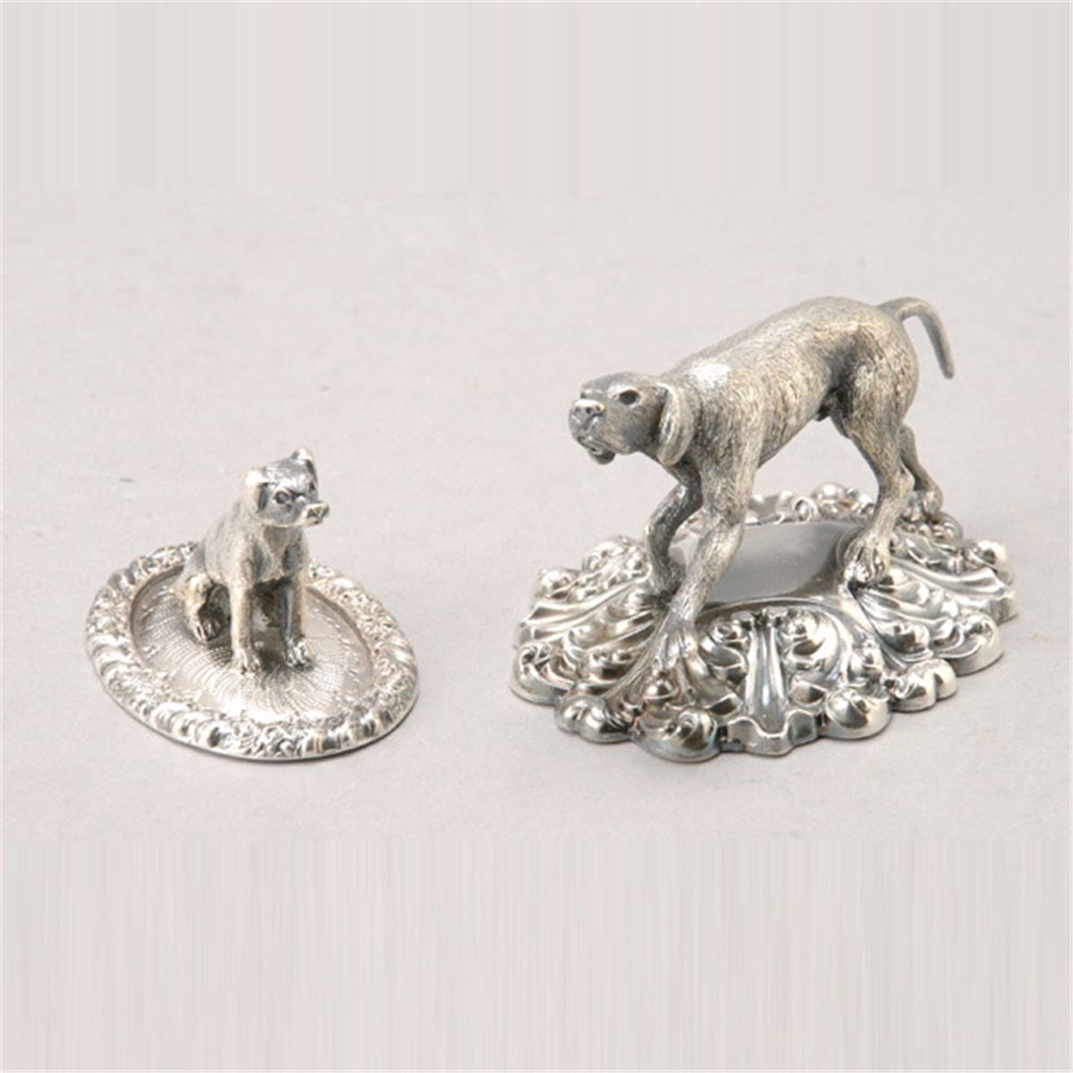 Two English Victorian Metal Figures of Dogs {Height of larger 2 3/4 inches}