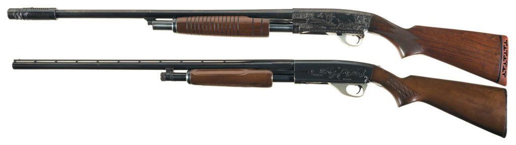 Two Engraved Savage/Stevens Slide Action Shotguns -A) Savage/Stevens Model 77B Shotgun