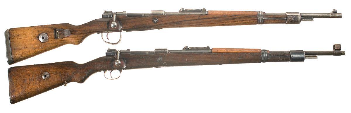 A) Receiver dated 1920, markings removed, WWII winter type trigger guard, matching renumbered bolt.