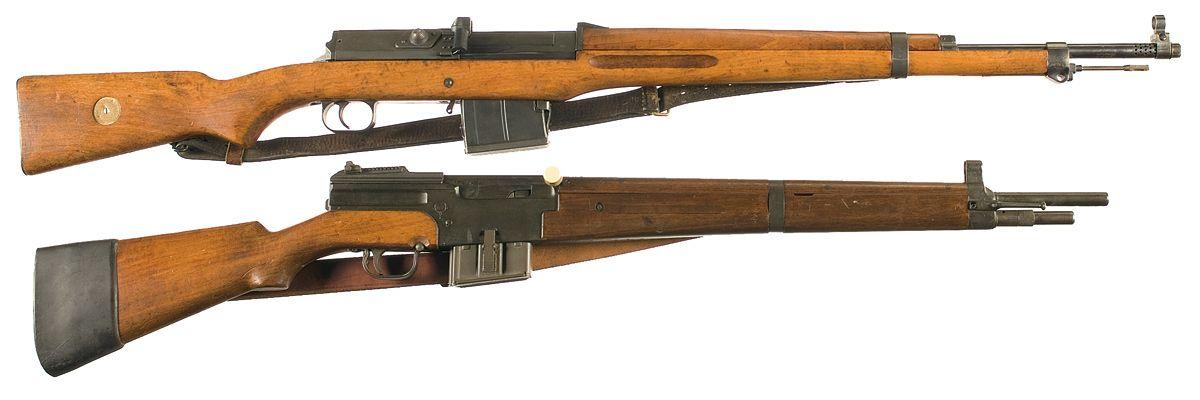 B) Original 1944/MAS Semi-Automatic rifle, standard receiver markings, plastic bolt knob, leather sling, slip on buttpad marked "MAS / 1951", importer marking on barrel.