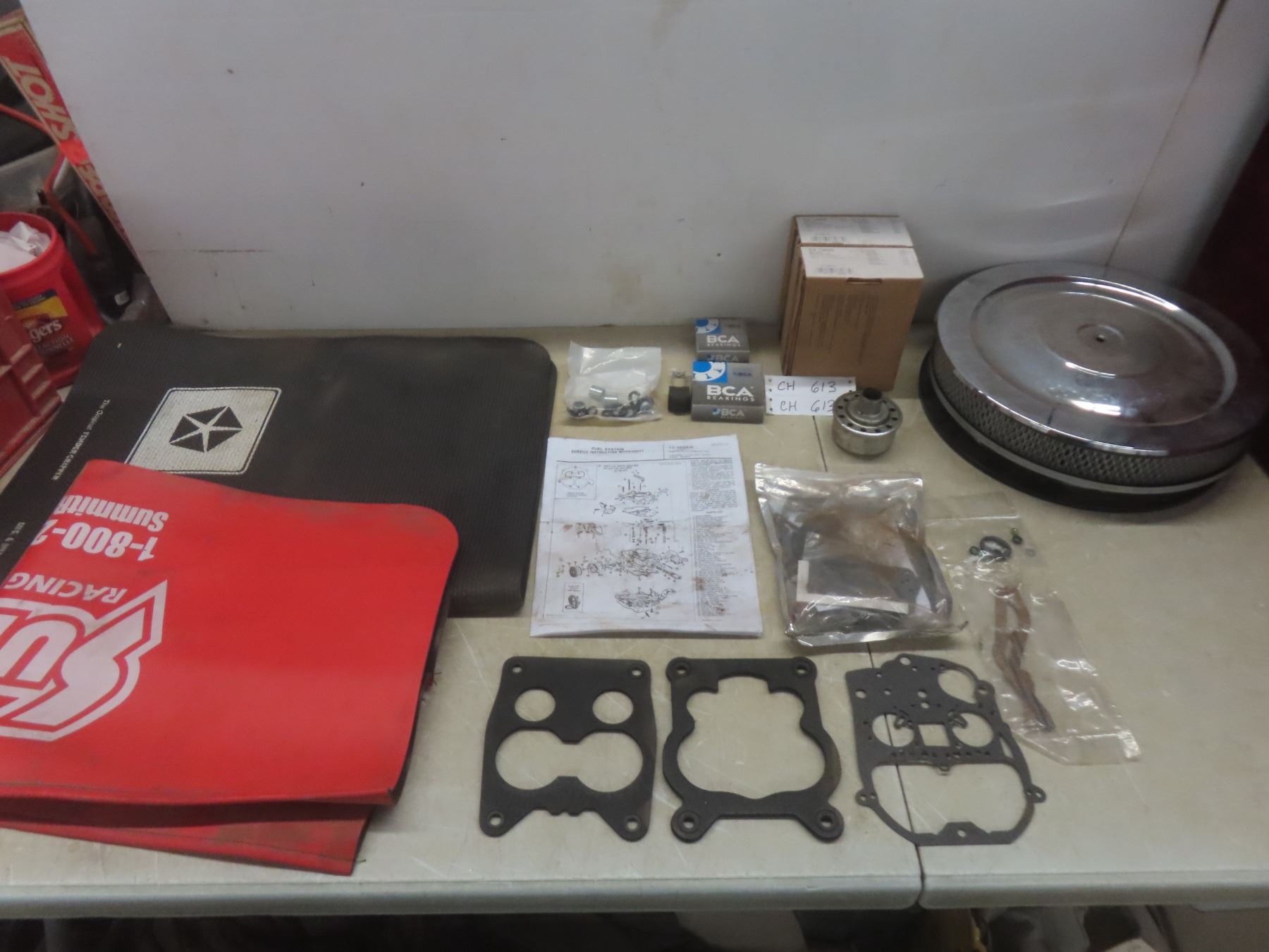 Two Fender Tool Mats, Miscellaneous Auto Parts, and Air Cleaner
