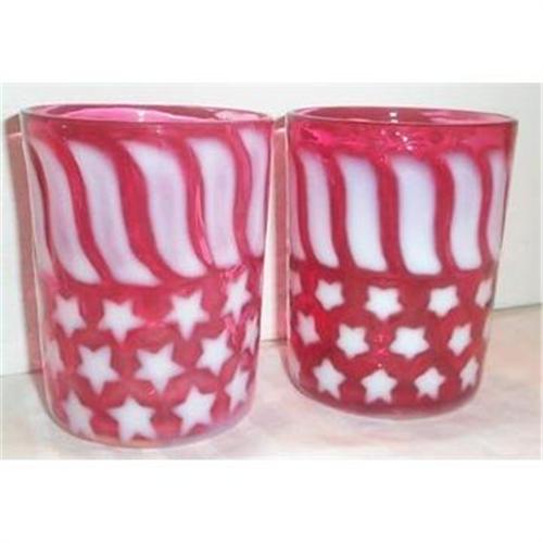 We are offering you two (2) fantastic Fenton Cranberry Stars and Stripes Tumblers all for one money. Each tumbler is in SUPERIOR condition with no chips, cracks, or dings and they each measure 3" in diameter and stand 3.25" tall.