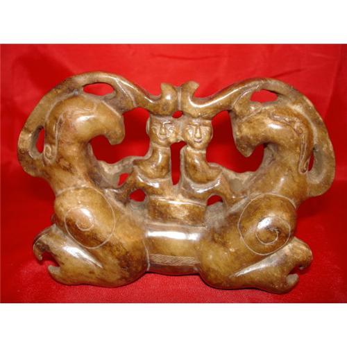 DESCRIPTION: TWO FIGURINES FLANKED BY PHOENIXES