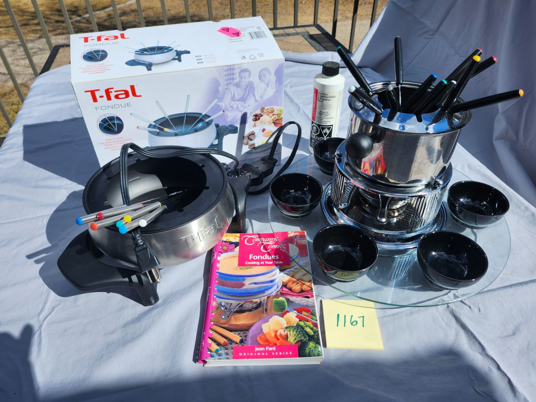 Two Fondues: one Electric, and one Flame, plus a Fondue Cookbook.