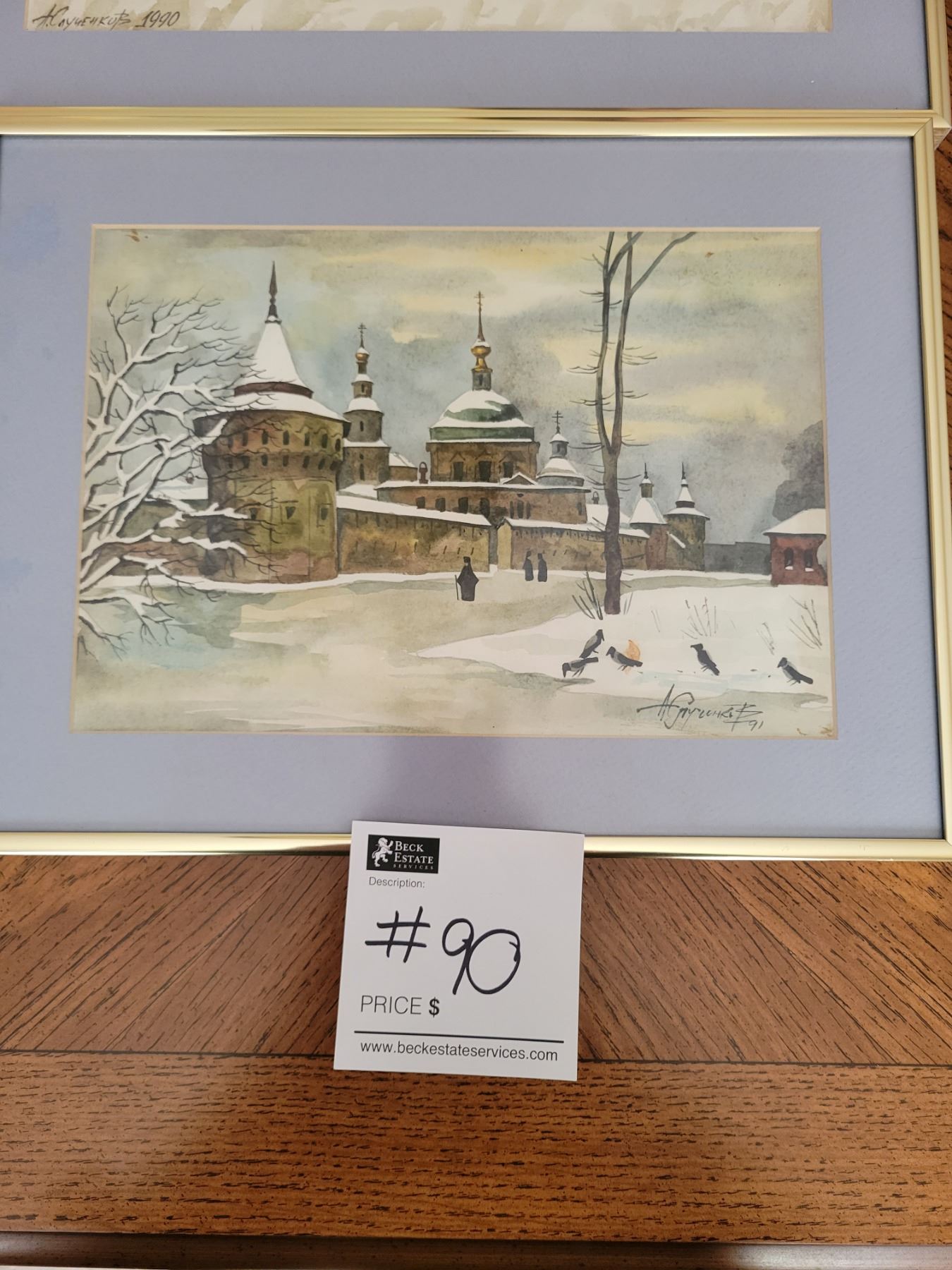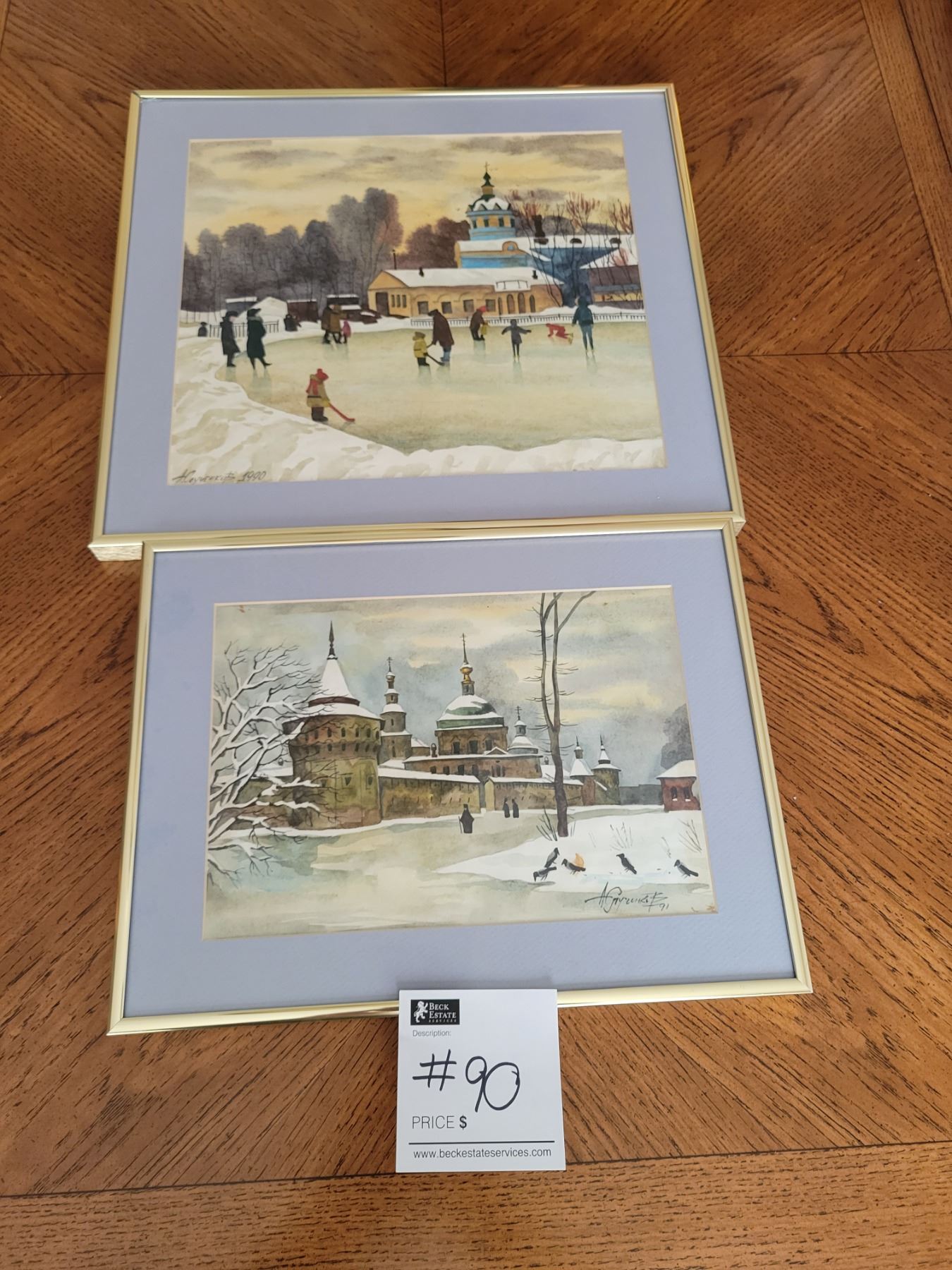 Two Framed Winter Scene Prints, Signed by Artist 1990-1991