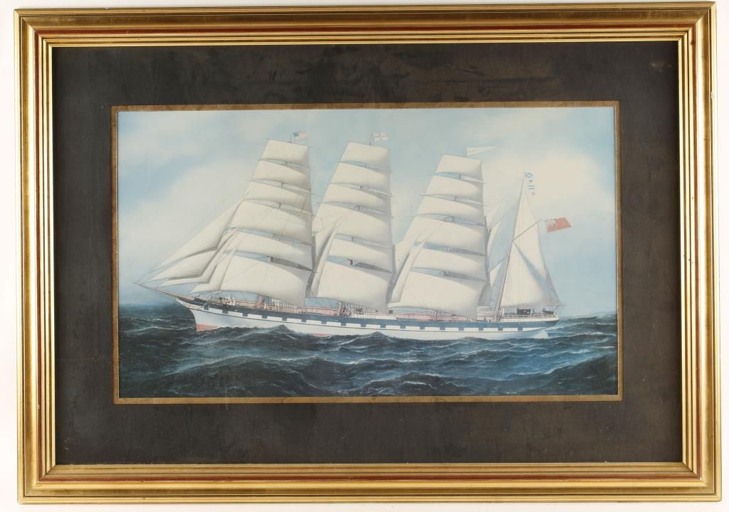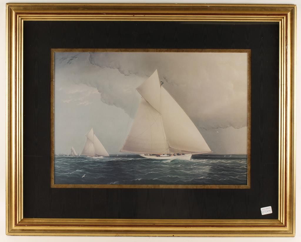 One is titled "America's Cup race". Approx. 40-1/2" by 32-1/2". The other is titled, "Forteviot". Apprx. 44-1/2" by 31-1/2".