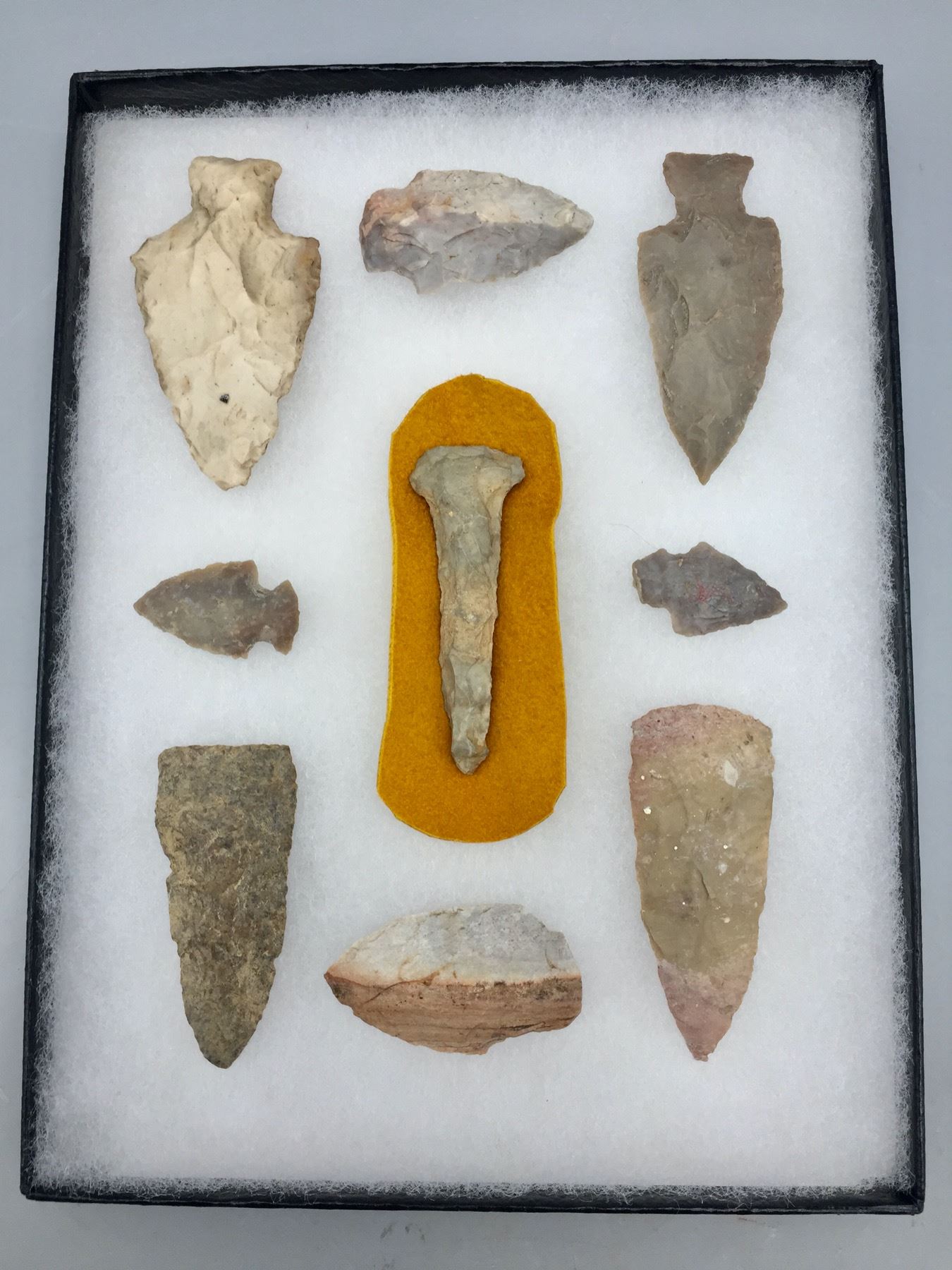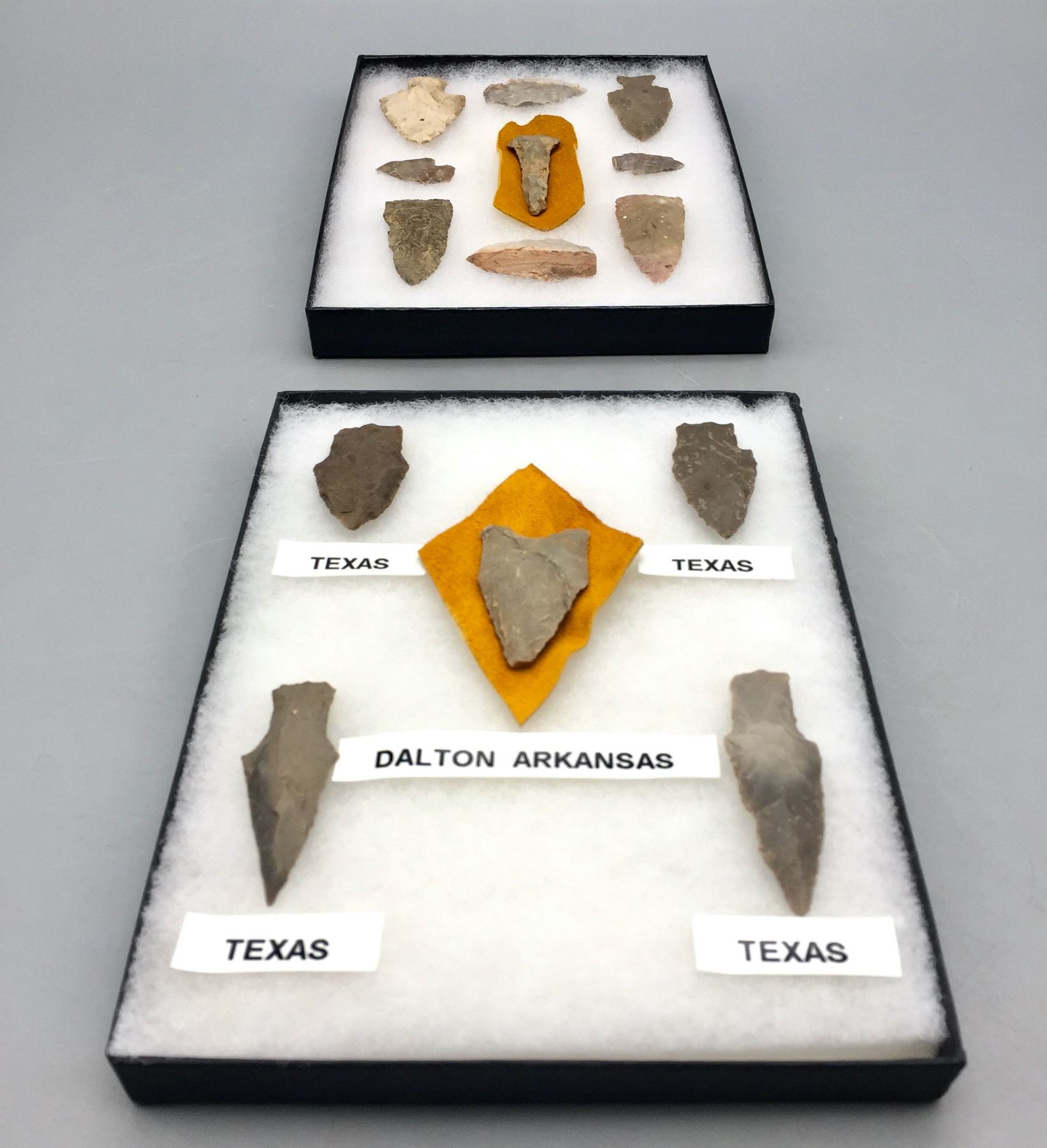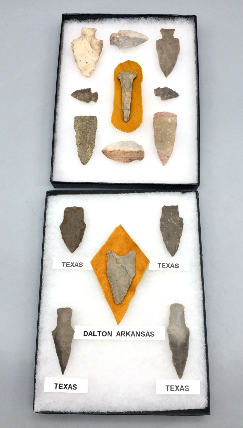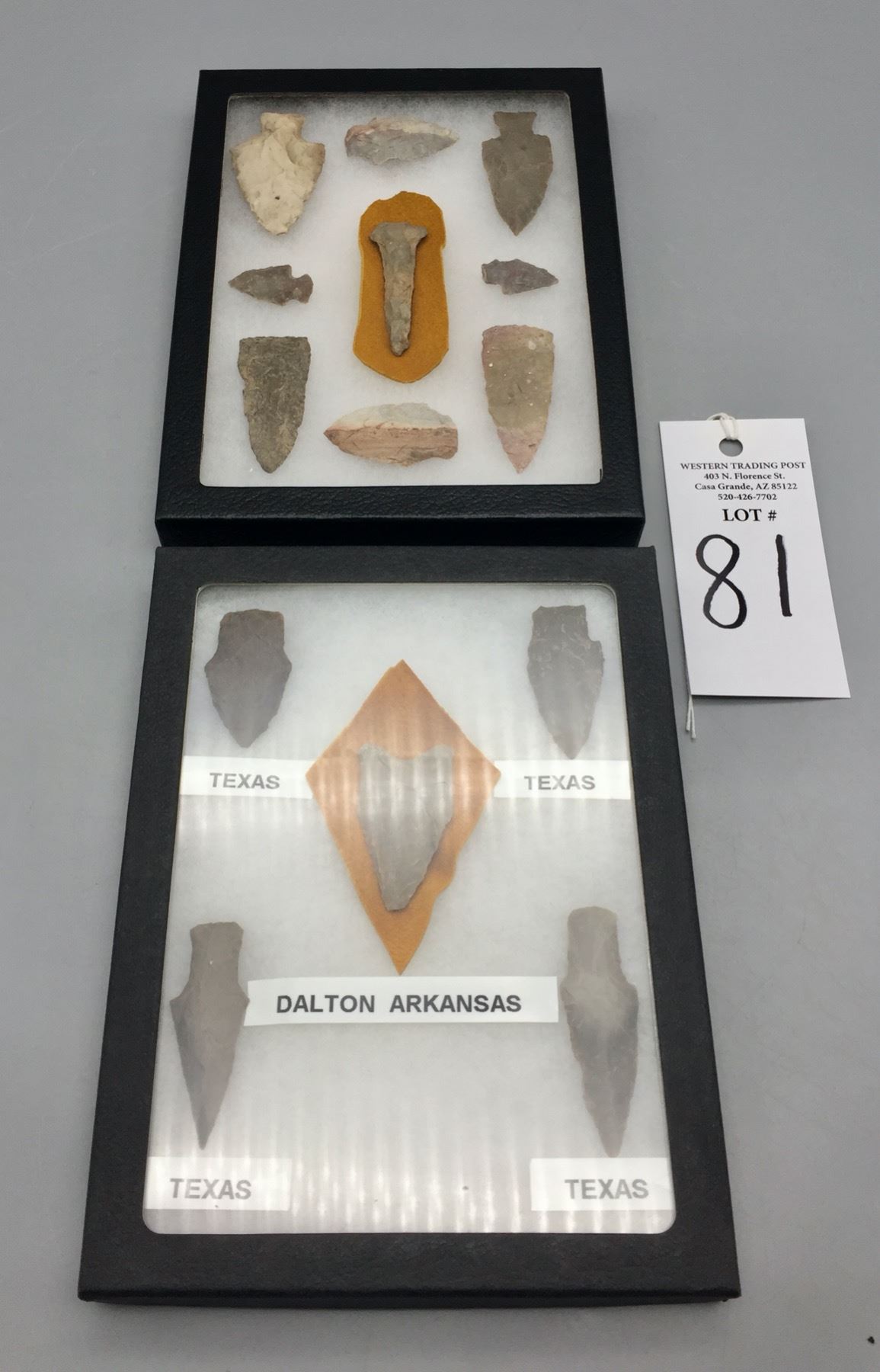 Description: Presented for sale in this lot are two framed displays of Prehistoric points from Texas, and Arkansas. These are nice, authentic points! Maker: Unknown. Approx. Age: Prehistoric. Size: 6-1/4â€w x 8-1/4†long. Condition: Good for their age, normal wear expected. Please look closely at the pictures - they are an important part of our description. Shipping: There will be a $8 handling / packaging fee for shipping this lot. The actual cost of postage will be added on top of that.