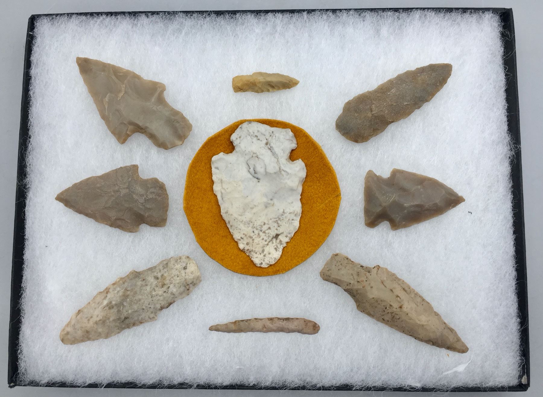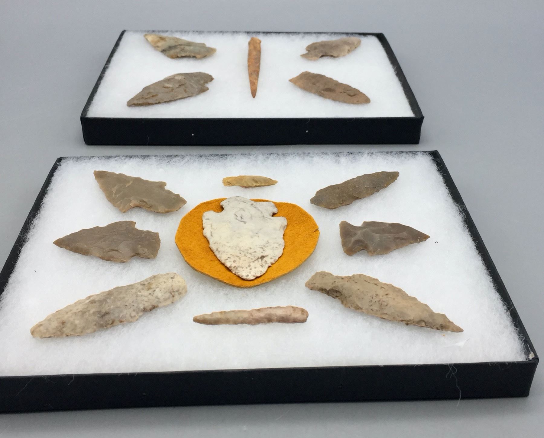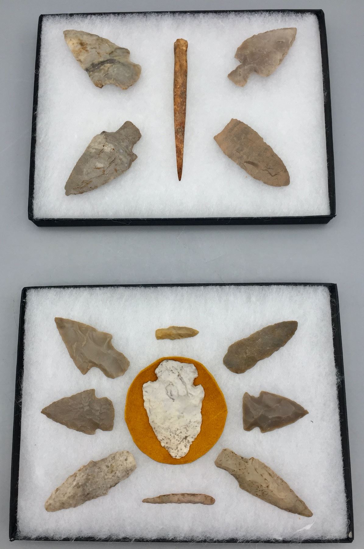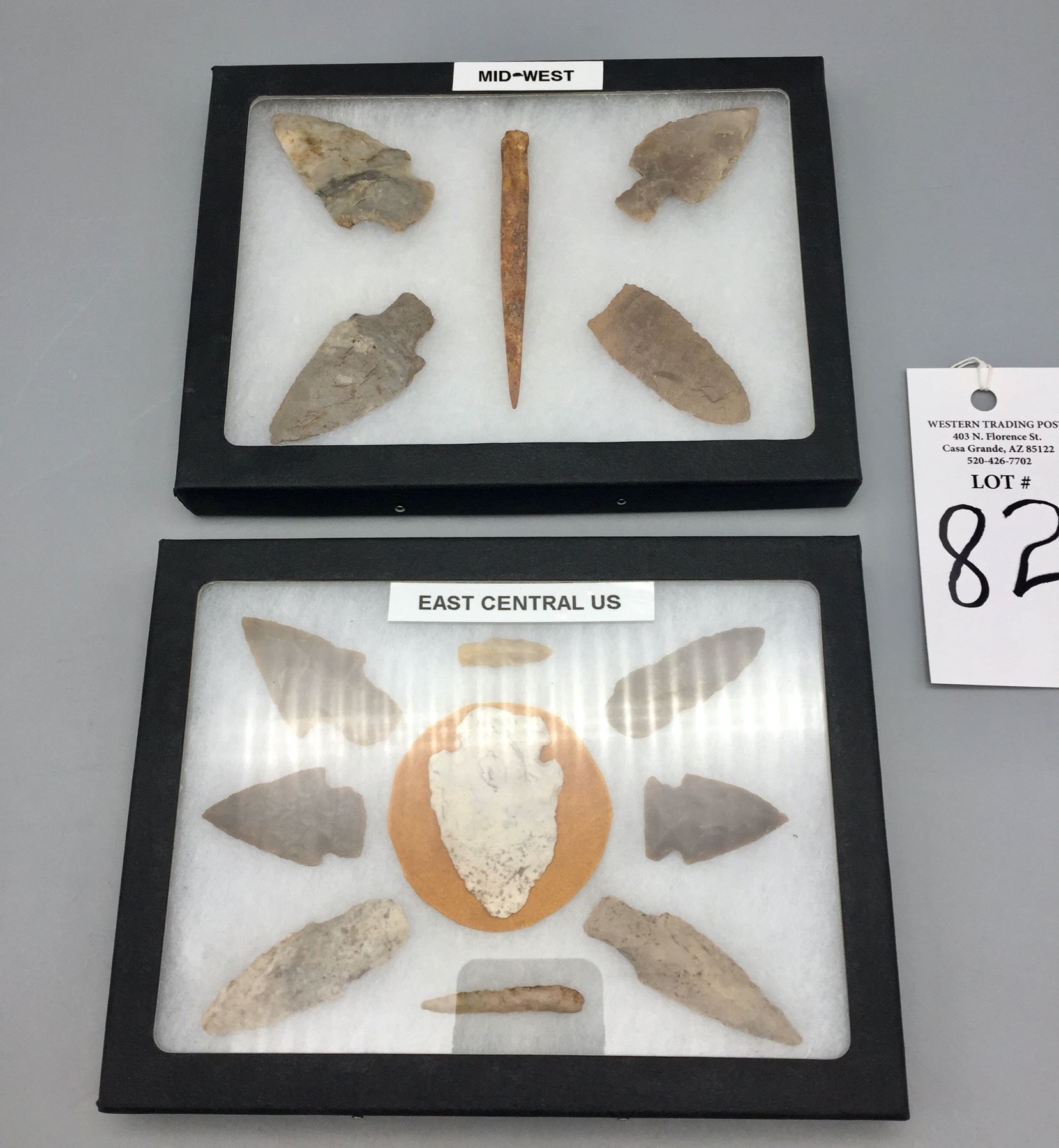 Description: For sale in this lot are two framed displays of Prehistoric points from the Midwest and East Central US. These are nice, authentic points! Maker: Unknown. Approx. Age: Prehistoric. Size: 8-1/4â€w x 6-1/4†long. Condition: Good for their age, normal wear expected. Please look closely at the pictures - they are an important part of our description. Shipping: There will be a $8 handling / packaging fee for shipping this lot. The actual cost of postage will be added on top of that.