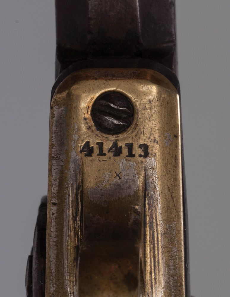 Two Frontier Pistols - Deringer and Colt. a) Remington ’95 Double Deringer, assembly #147, circa early 1890s, .41 rim fire, 1st type late issue, 3" barrels, 2-piece hard rubber grips. Probably the best known of the small frame large caliber pistols named for Henry Deringer of Philadelphia. Brought to many young Wild West fans by the 1960s TV series, Yancy Derringer. CONDITION: barrels show 95% bright long-ago-redone blue, same with frame but rather than a bright blue it is more muted; both areas show wear from use since refinish, bores have areas of pitting, clear markings, mechanically very good, grips are excellent. b) Colt 1849 pocket Revolver “Frontier Conversion”, ingenious method of turning a percussion revolver into a .32 short single shot. All parts except the fabricated ejector and breech release are from Colt 1849 Pocket #414135. 5 3/4" barrel retains 2 line New York address, recoil shields have been flattened, backstrap has been milled for a wire shoulder stock, hammer has been shortened but retains sighting notch, strikes on a floating firing pin in frame. CONDITION: Iron is a mottled brown with some silver on the high spots, brass is original with 10% silver wash, 1-piece walnut grips are excellent with a light oil finish over original varnish, serial numbers match.