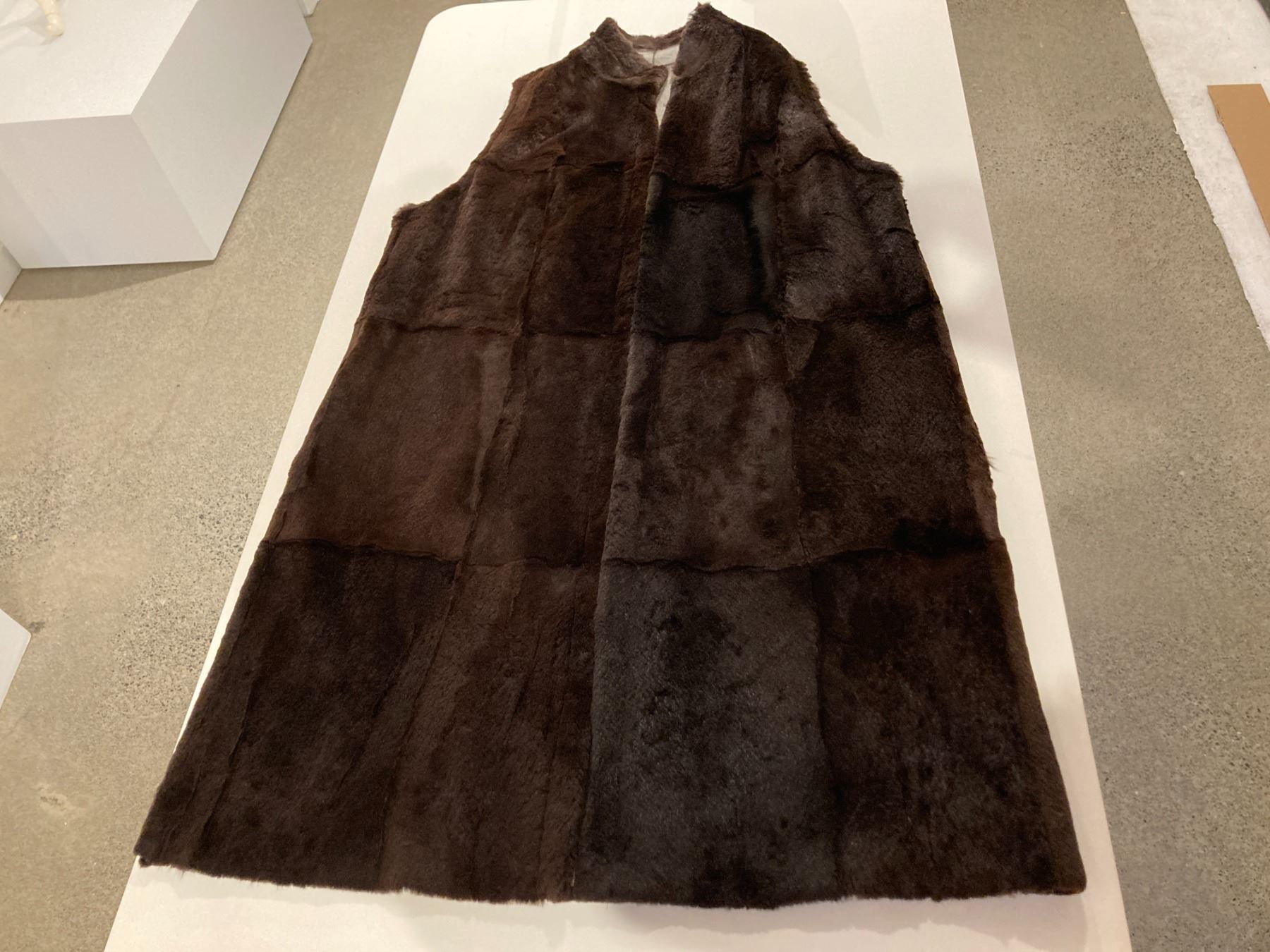 measurements- sleeveless coat measures 44" from the top of the shoulder to the bottom. 24" across from armpit to armpit
