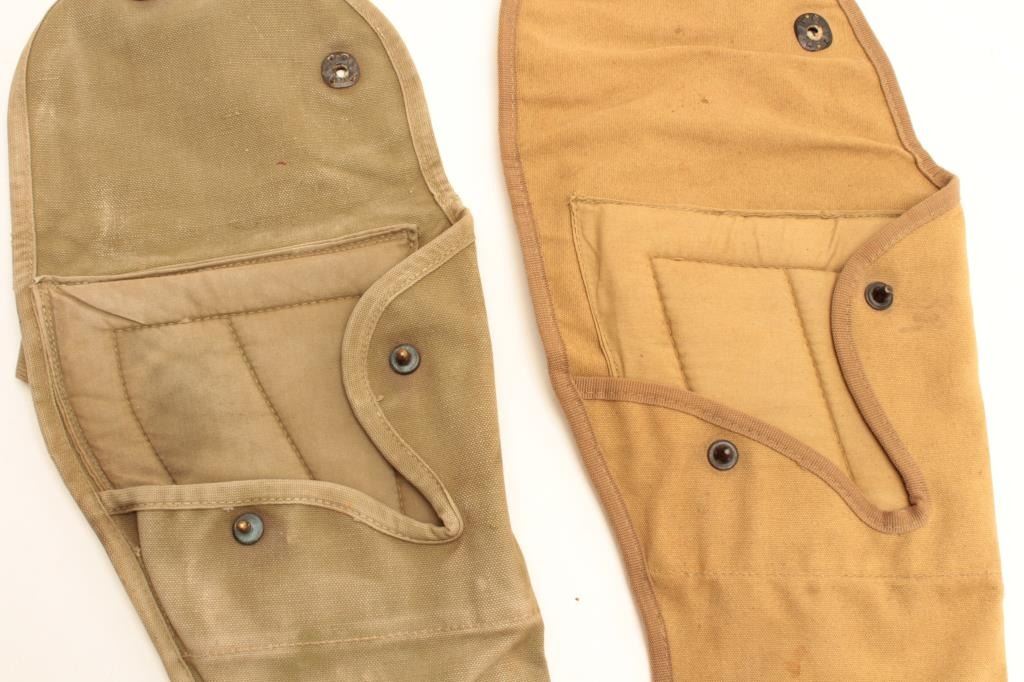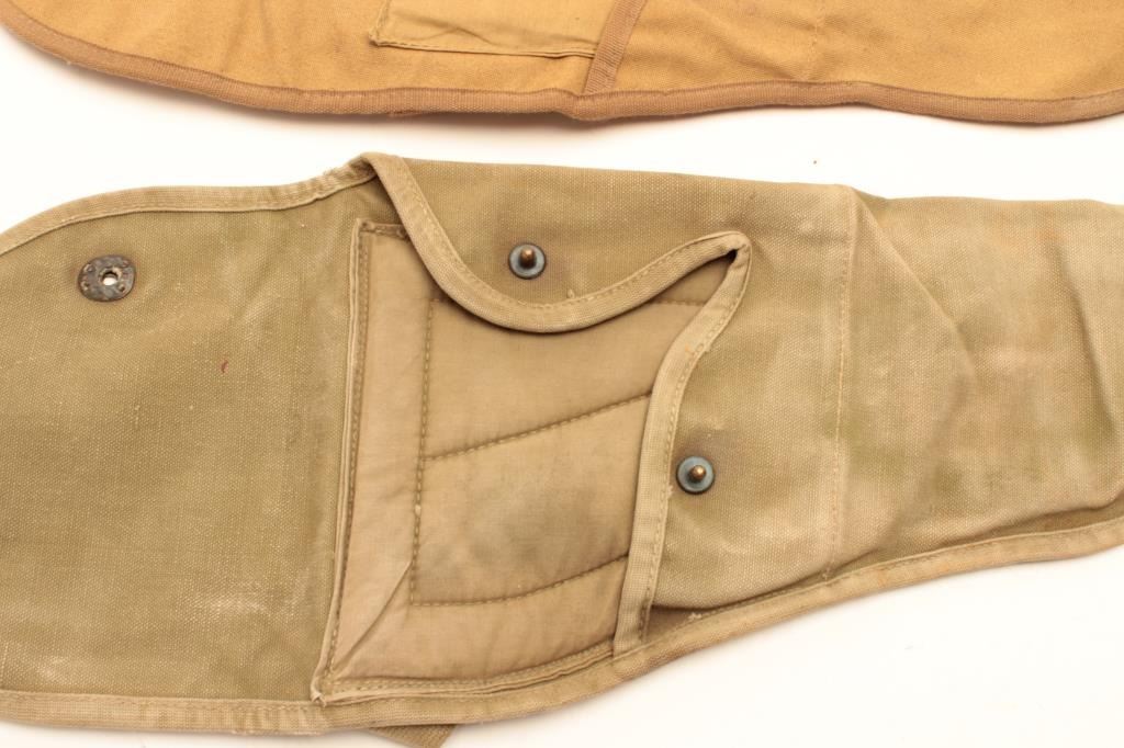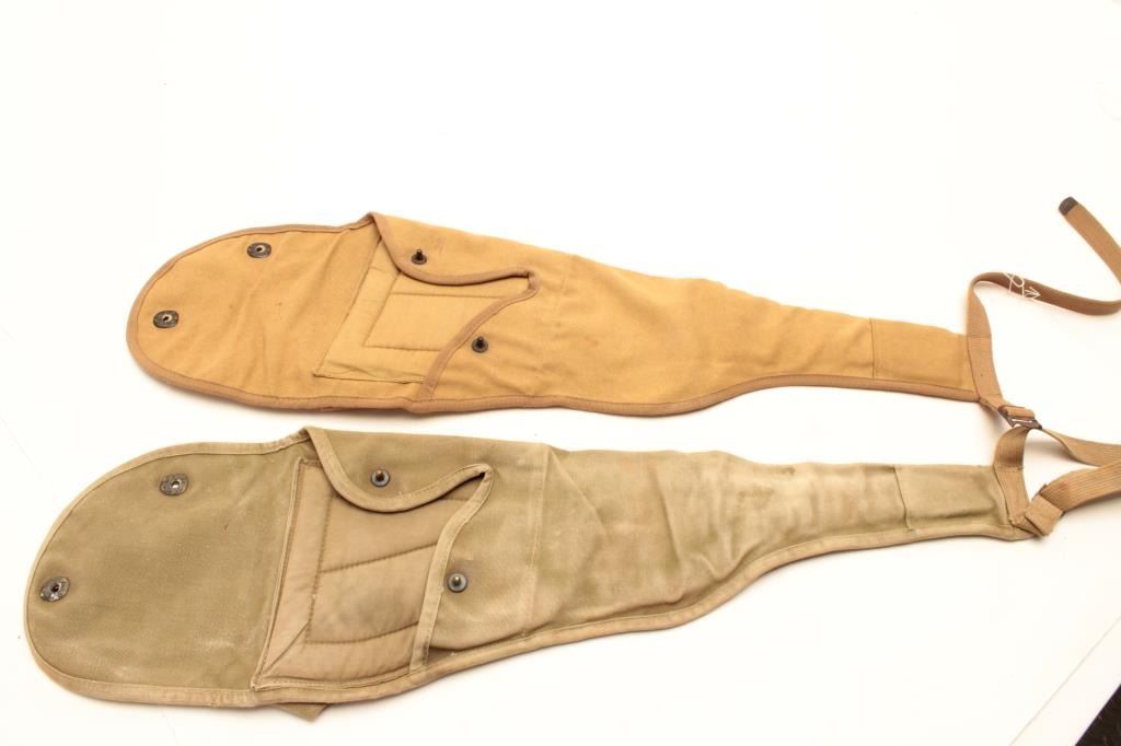 Two G.I.-issue canvas “jump” cases for M1 Paratrooper carbines; one Sems 1943 and U.S. marked in tropical brown color; one unmarked drab green; Sems is very good and unmarked is good. Est.: $100-$200.