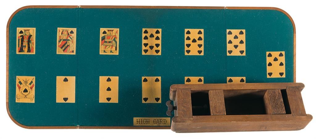 Antique card press, G. Evans and Co. pharo layout (40"x 17" felt covered folding board). Overall excellent with a few small tears in the felt on the pharo layout.