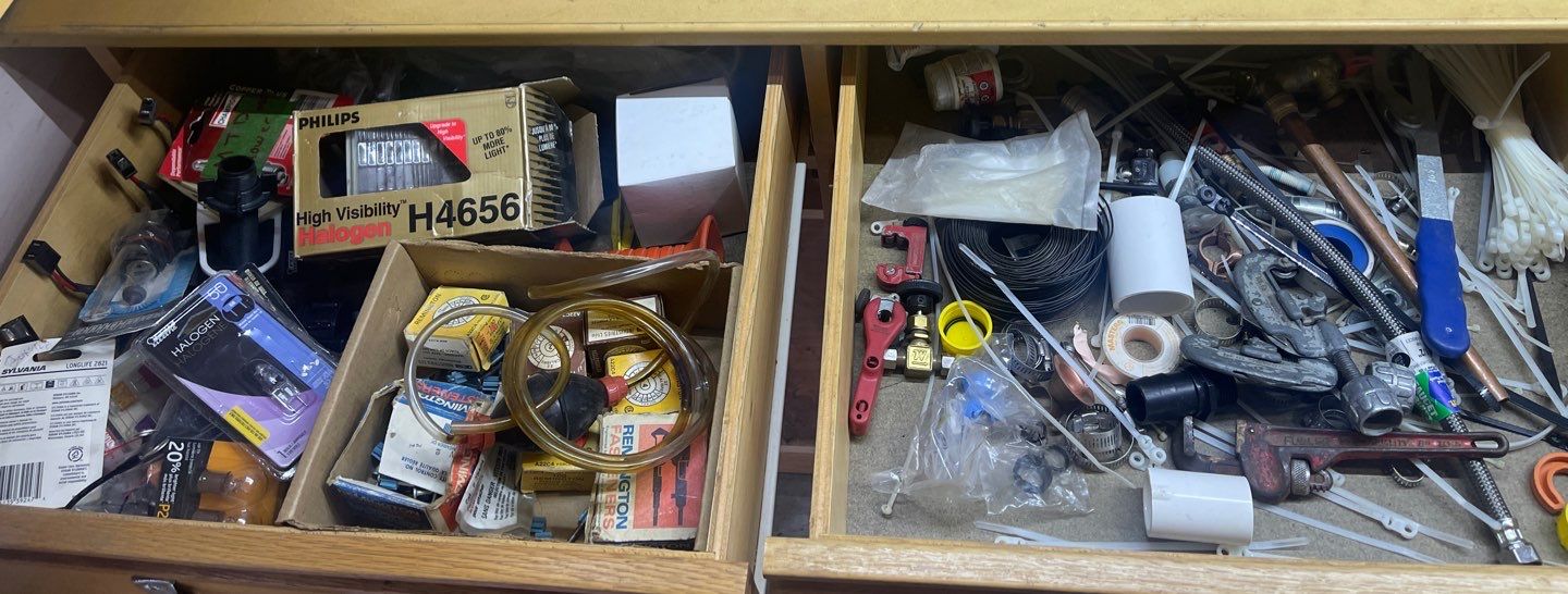 Two Garage Gadget Drawers  Various Shop Accessories