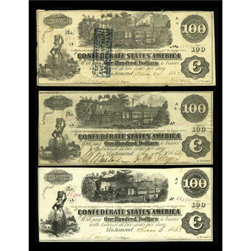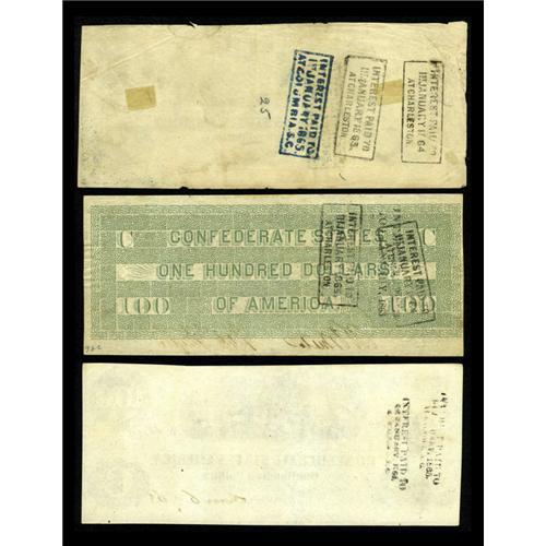 <B>Two Genuine and One Fake C-note.</B></I><BR>T39 $100 1862 <B>Fine,</B></I> once mounted<BR>CT39 $100 1862 <B>VF</B></I><BR>T40 $100 1862 <B>Choice AU.</B></I><BR><I>From The George P. Hammerly Collection</B></I><BR><BR><b>Shipping:</b> Coin/Currency (<a target="_blank" href="http://www.heritageauctions.com/common/shipping.php">view shipping information</a>)
