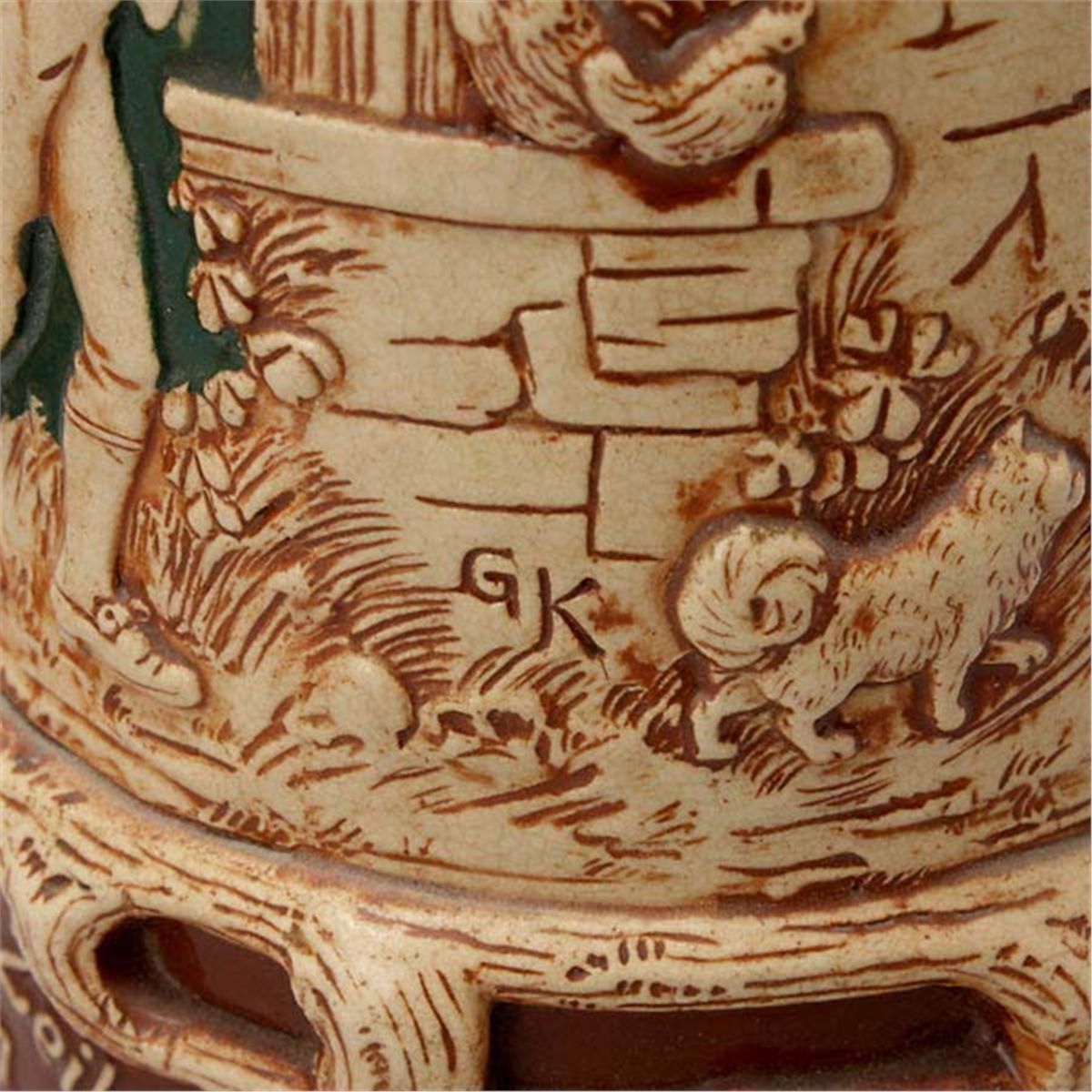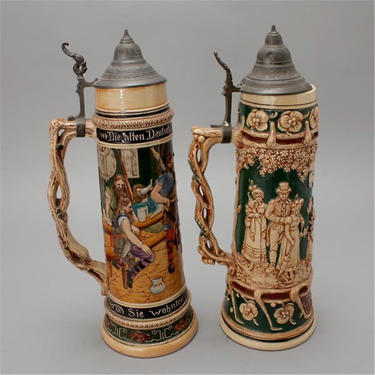 Two German Beer Steins {Height of taller 17 1/4 inches} [One lid needs to be reattached]