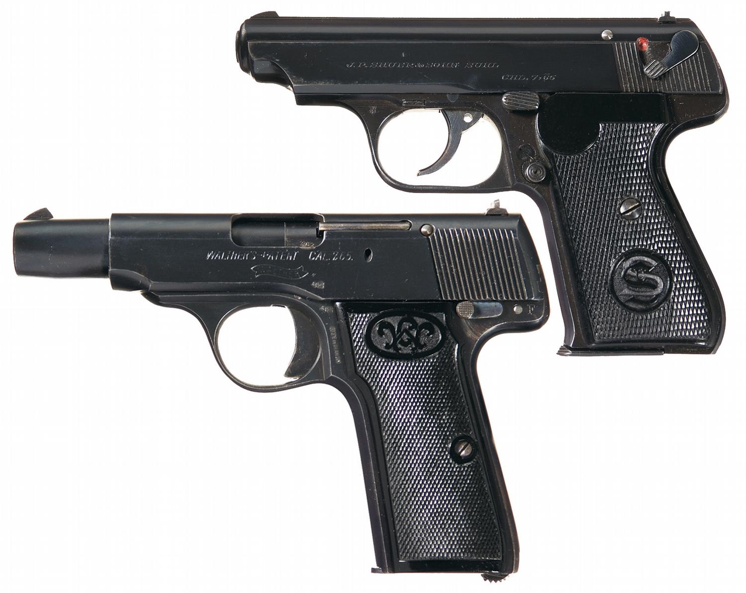 Introduced in 1910. One line address on the right side of the slide, "WALTHER'S - PATENT" caliber over the Walther banner on the left side. "Crown / N" proofs on the left side of the frame and slide, and "MADE IN GERMANY" on the left side of the frame. Fixed sights and fitted with black checkered hard rubber grips.