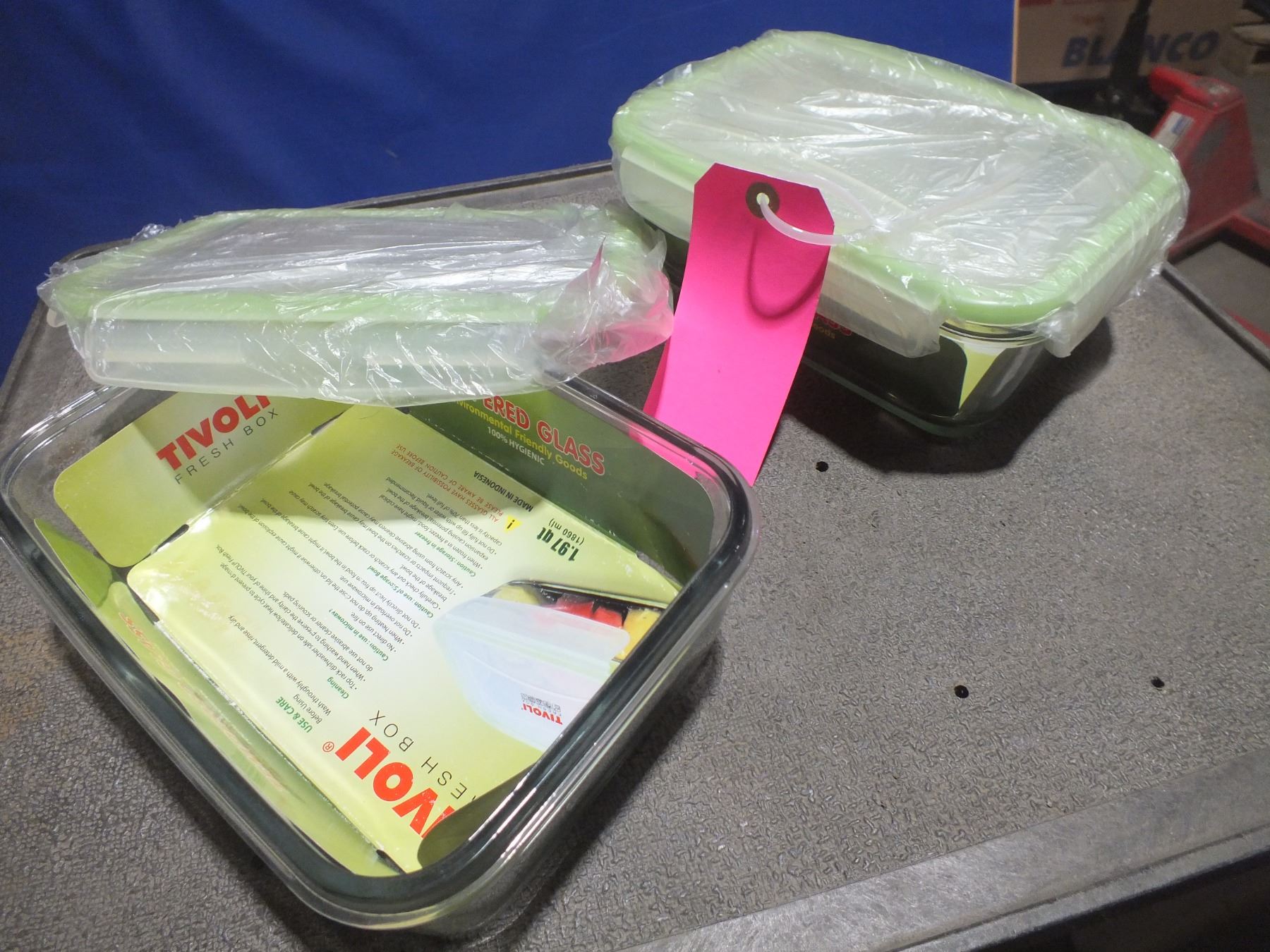 Two Glass Food Storage Containers, 1.97 qt...new...sold as is / where is