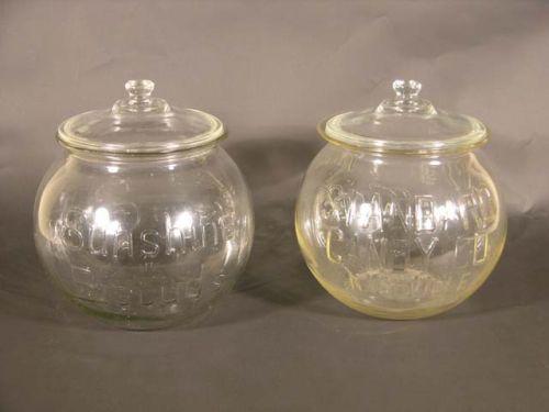 Two glass store jars. 1) Sunshine Biscuits, 2) Standard Candy Co. - Nashville, TN.