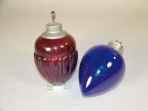 Two glass weathervane ornaments. One ruby, one cobalt. Very rare, in Ex. cond.