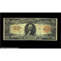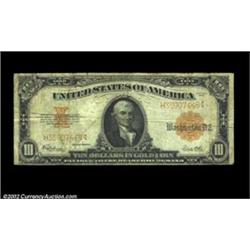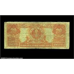 Two Gold Certificates. The first is a $10 Fr. 1173 grading Fine, and the second is a $20 Fr. 1187 grading Very Good with a short tear at the top center. 2 notes Important notice: We expect to be auctioning lots at the rate of 200-250 per hour. Sometimes eBay Premier live bid software cannot keep up with that pace, so we strongly recommend that you place a realistic proxy bid now as insurance to avoid disappointment. Also please note that all Heritage/CAA lots purchased through eBay Premier carry a 20% Buyer's Premium. Please make sure you read the Terms and Conditions.