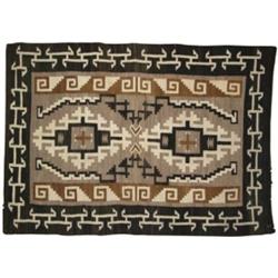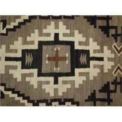 Large Two Grey Hills Rug. Small. Hole in the Middle. 4' 9.5" x 6' 2". Est $1,750 - $2,500.